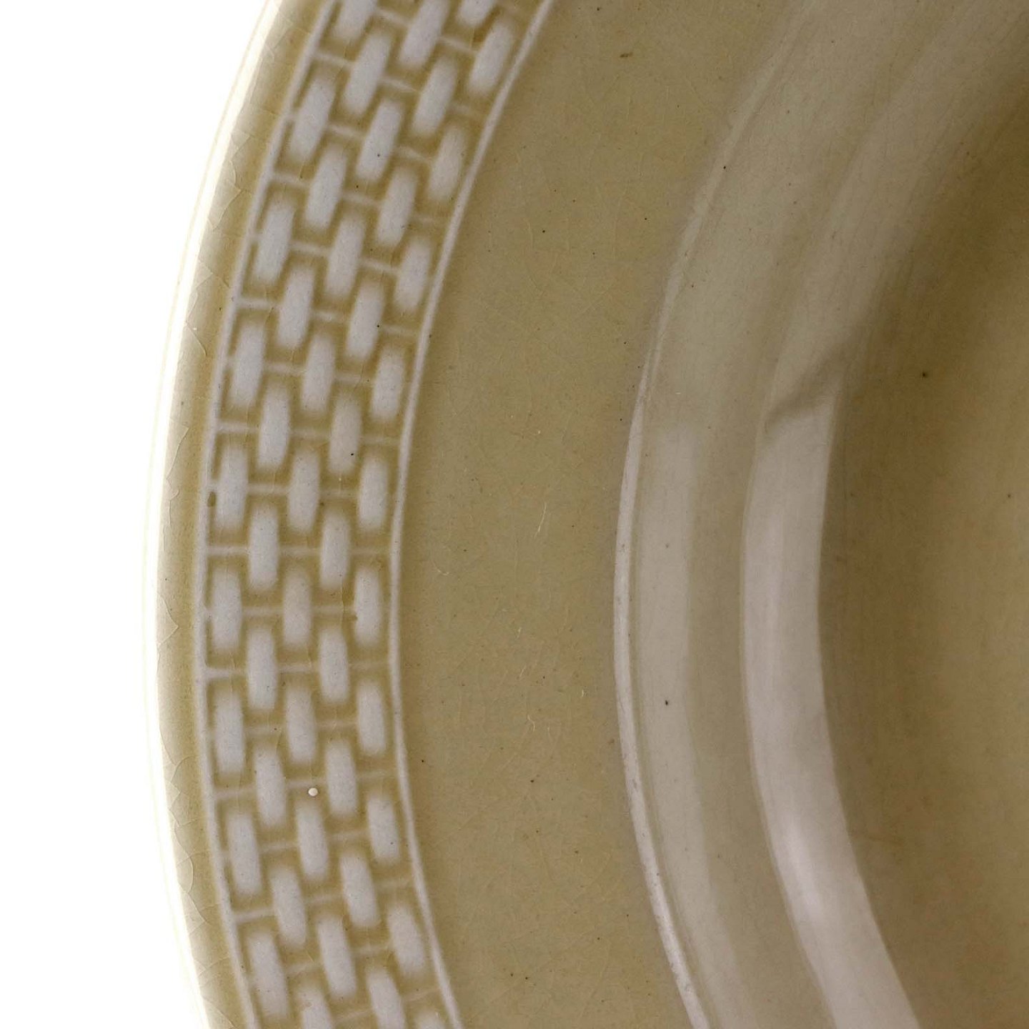Sandfarvet fajancestel i stelform Viktoria II - Fletværk med dekoration af hvidt flet på gullig baggrund.