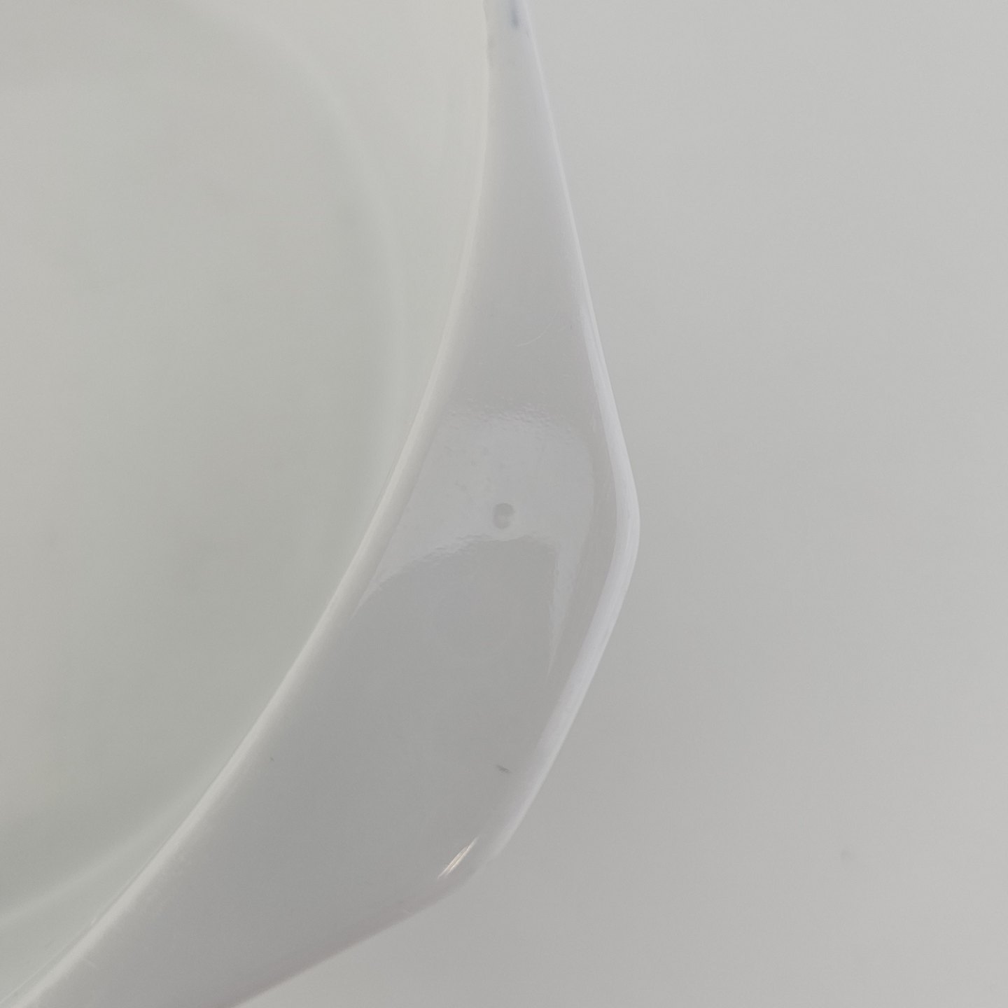 Blå Flamme er hvidt ildfast porcelæn dekoreret med blå striber, der ligner flammer.