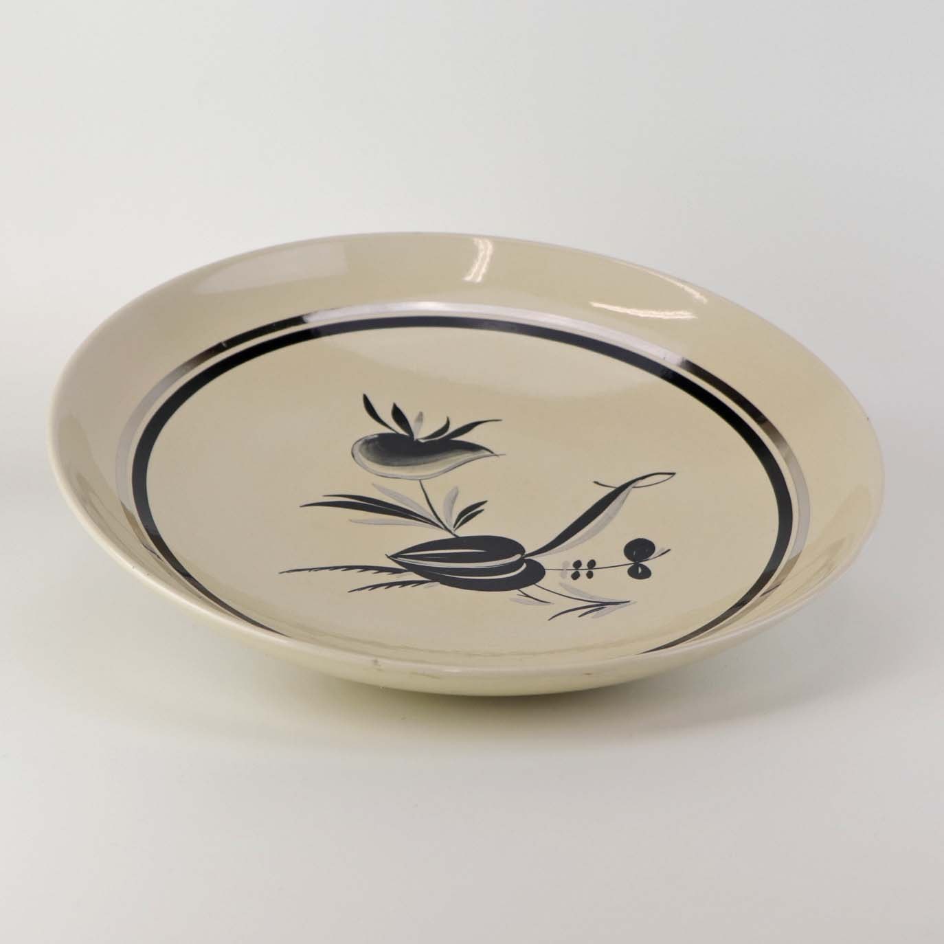 Rundt kagefad i fajance fra stellet Dragsholm fremstillet i perioden 1934-1965. Nr 256