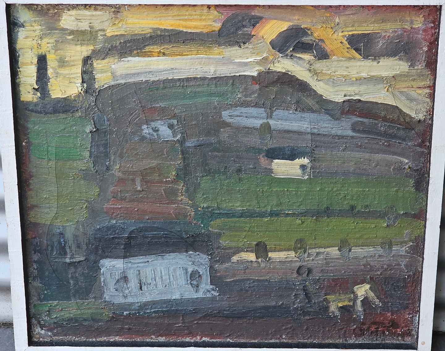 Oliemaleri på lærred med hvid ramme