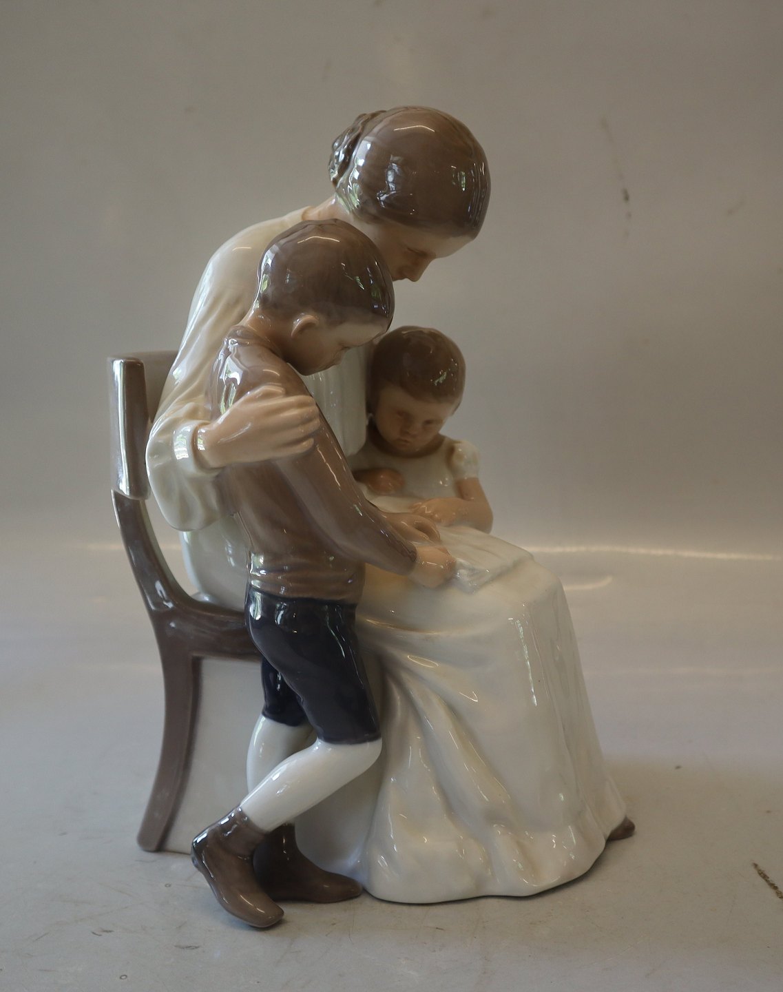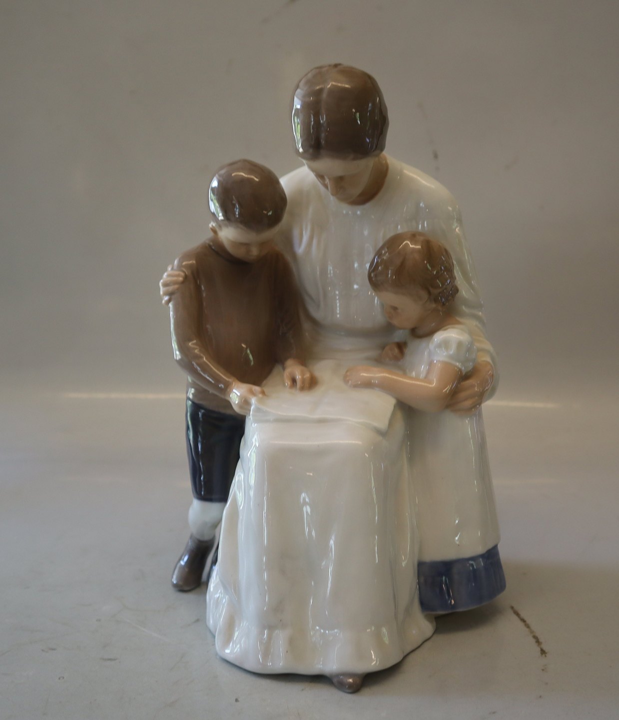 Beskrivelse: Bing & Grøndahl B&G 1644 Mor med børn læsende i en bog IPI 28 cm I fin og hel stand. Ingeborg Plockross Irminger
