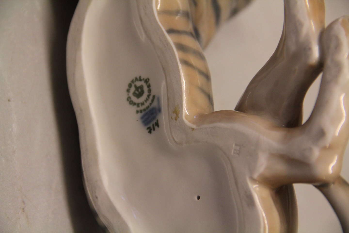 Beskrivelse: Kgl. figur fra Royal Copenhagen 714 Kgl. Tiger Lauritz Jensen 1906 14 x 31 cm I hel og fin stand