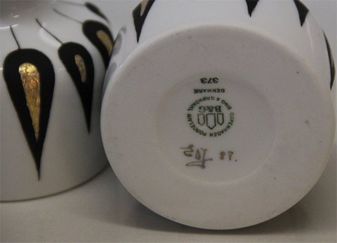 Description: Bing and Grondahl B&G 375 Modern vase with gold leaves decoration 7 cm Marked with the three Royal Towers of Copenhagen. Bing & Groendahl In mint and nice condition
