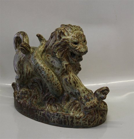 Description: Royal Copenhagen Stoneware 21857 RC Lion and snake 26 x 36 cm, Knud Kyhn, August 1961 KK. In nice and mint condition