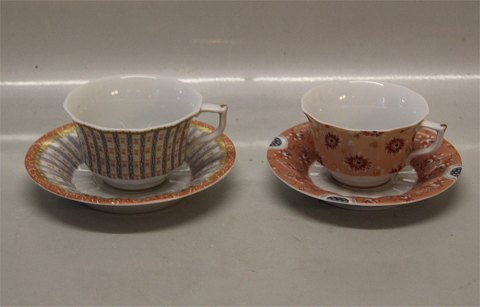 . Inspireret af Gerhard Hennings figurer af samme navn. Et kompleks flerfarvet transfer mønster på den kantede form som Blå Blomst Kantet. Design Finn Næss-Schmidt og Jørgen Nielsen. De grå dele har nummer 1201, terrakotta 1202 og serveringsdele med lidt af hvert 1203.