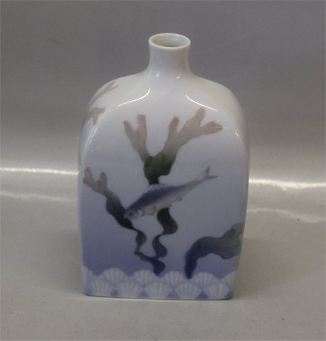Art Nouveau Bing & Grøndahl B&G 3112-65 Art nouveau Vase med tang og fisk 15 x 10 cm Muligvis Hegerman Lindencrone signatur