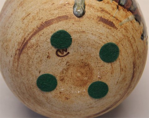 Conny Walther (1931 - )Danish Ceramicist & sculptor. Educated at the Danish Academy of Art (1951) nWorked a few years together with Nathalie Krebs for Saxbo and at Kaehler’s in naestved. Own studio & workshop from 1954 - 1984. Known for her work of art pottery and ceramics with polychromatic and / or thick glossy dripping black glazes. Impressed CW Monogram. Exhibition all over the world and represented