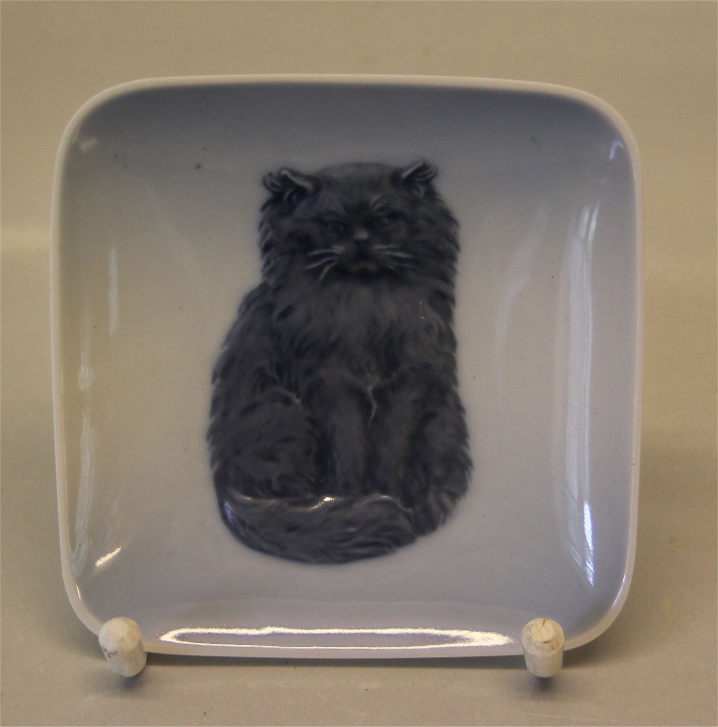 : Kgl. fra Royal Copenhagen 4385 Kgl. Katte plakette - grå kat 10,7 cm I hel og fin stand