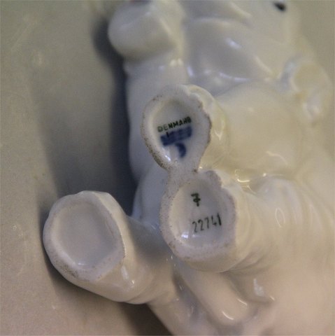 Description: Royal Copenhagen Stoneware 22741 RC White Elephant young with leg up 7.5 cm March 1982 Jeanne Grut. In nice and mint condition