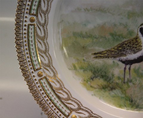 240-3549 A "Glover" Dinner plate 25.5 cm Fauna Danica "Charadrius apricarius", Game Plates (1965) 1st. Factory on pearl pattern with gold rim. Factory first and in nice and mint condition