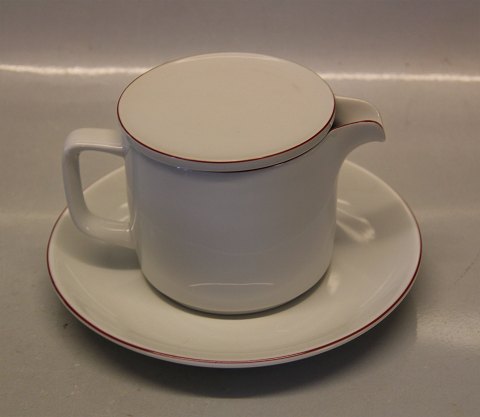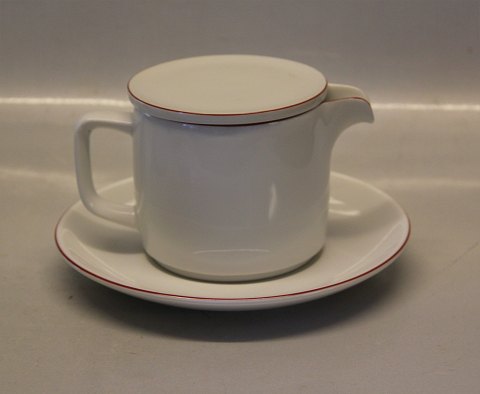 6265 Gravy boat with lid and detachable stand 3 dl (563) Red Pot Royal Copenhagen Porcelain Design Grethe Meyer. A Variant of White Pot and Blue Line ca 1980