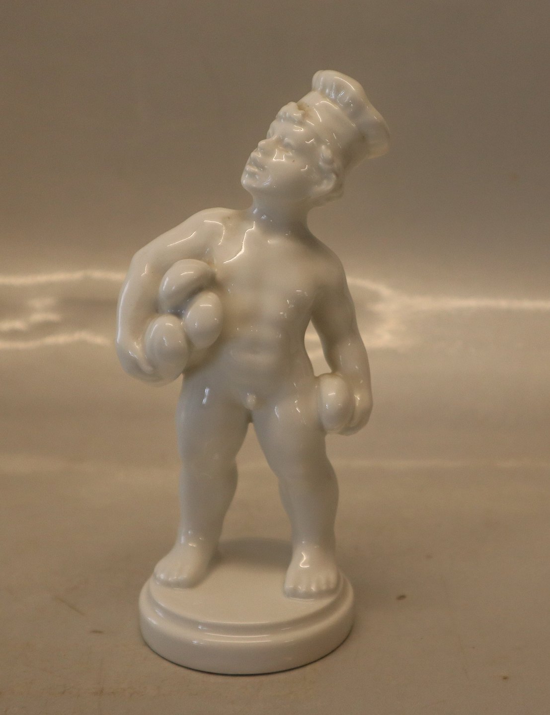 Beskrivelse: Dahl Jensen hvid 1190 Bager (DJ) 13,5 cm, hvid Blanc de Chine. Mærket med kongelig krone og DJ Copenhagen i hel og fin stand.