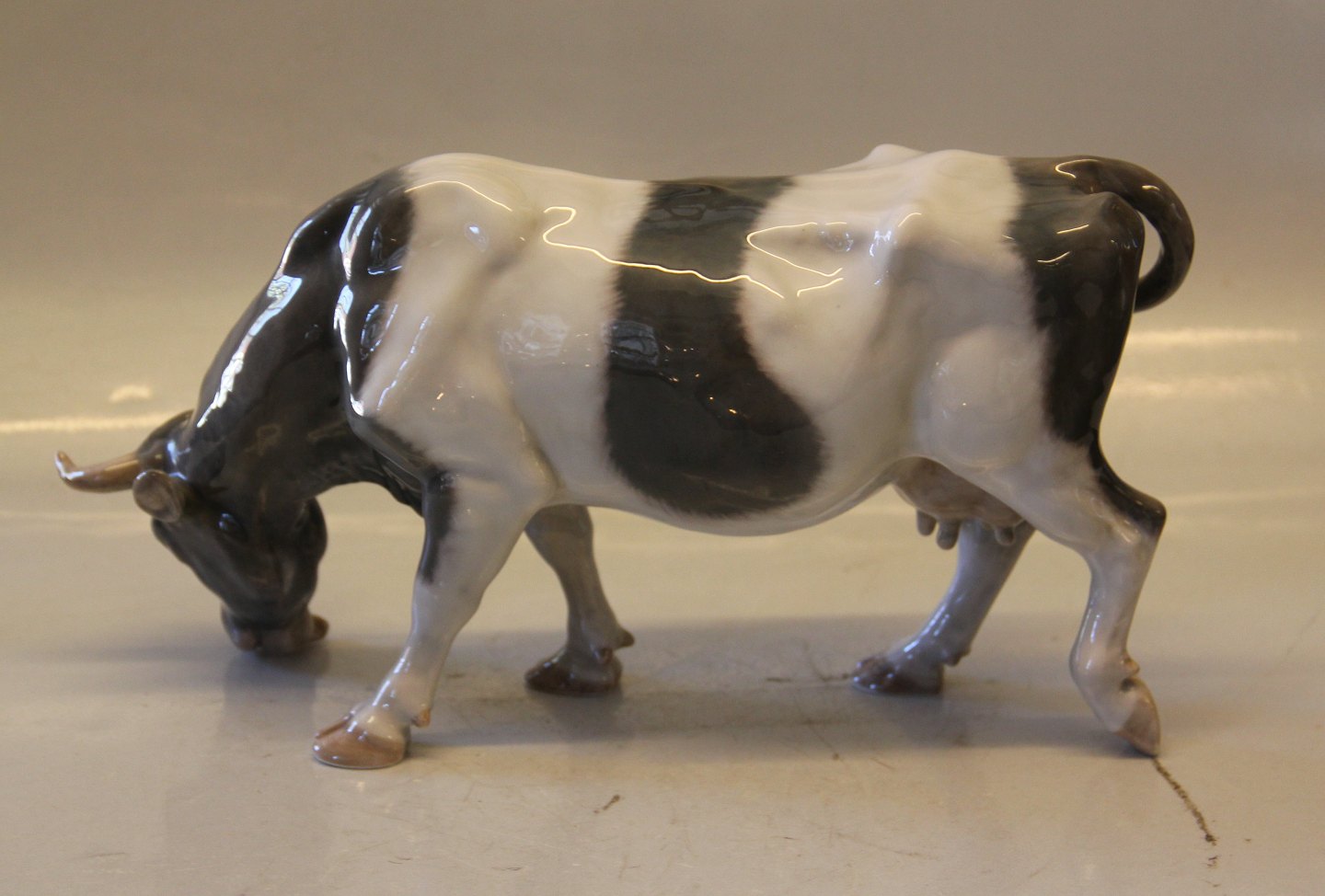 Description: Royal Copenhagen 1310 RC Cow Black/Grey version -1552 Lauritz Jensen 1911 15 x 28 cm In mint and nice condition