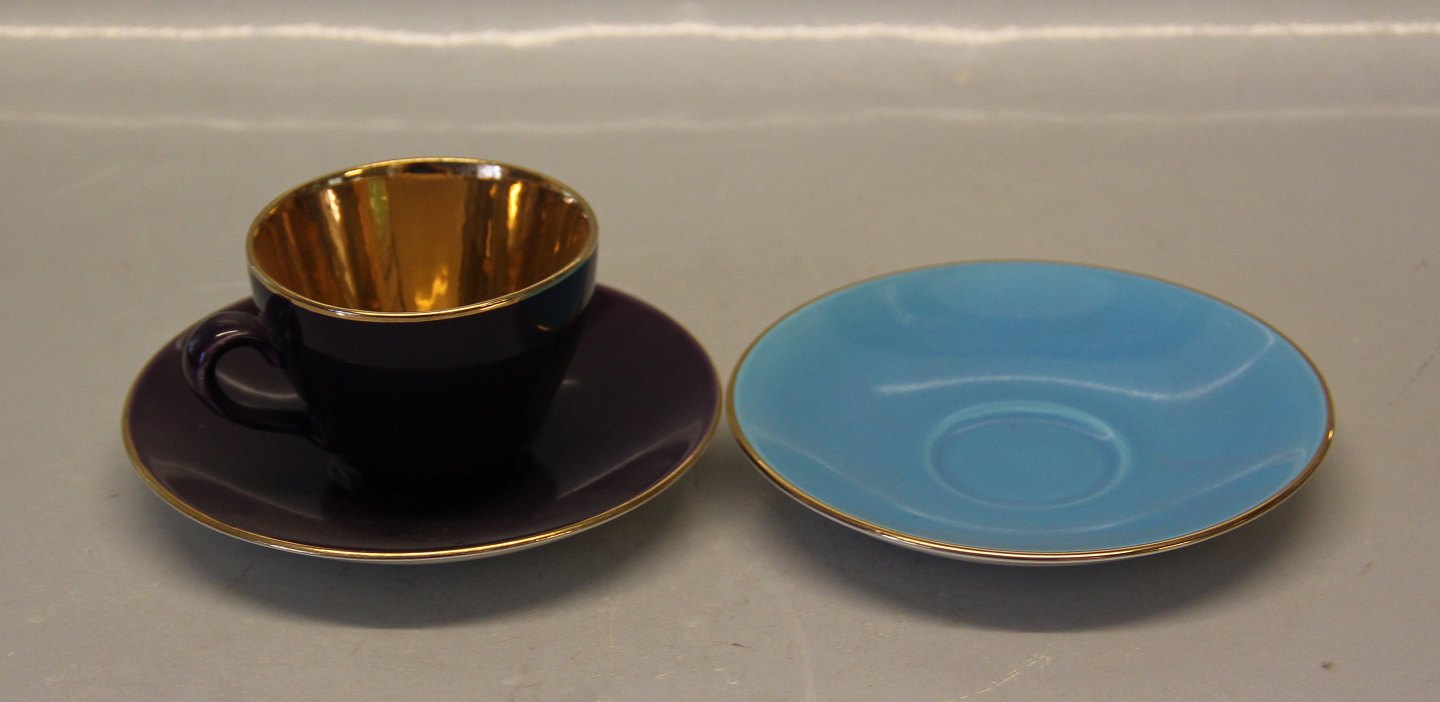 Mokka kopper med guld 5.5 x 7 cm underkop 12 cm Aluminia Fajance Confetti SE beholdningsliste