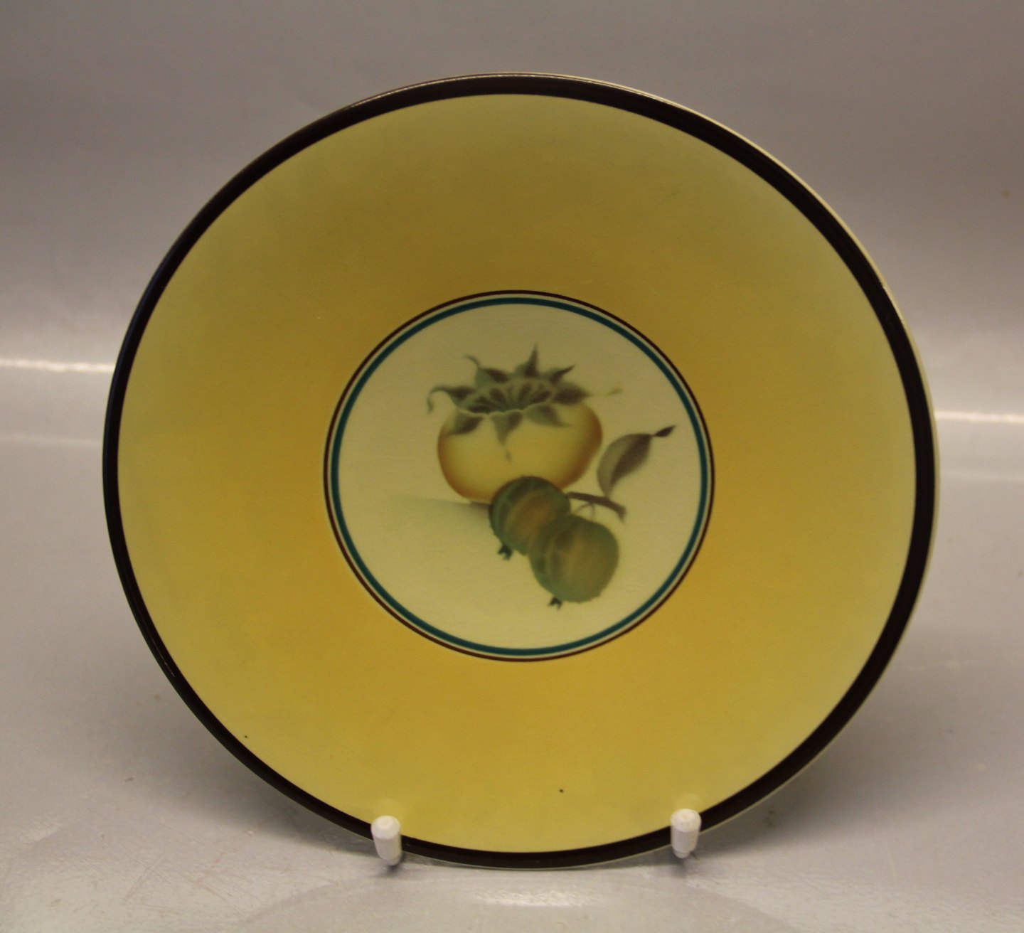 1484-02 Gult æble og grønne blommer, Frugttallerken, rund, 20 cm (N. Th.) 1933, Frugtstellet Bellona 0 stk