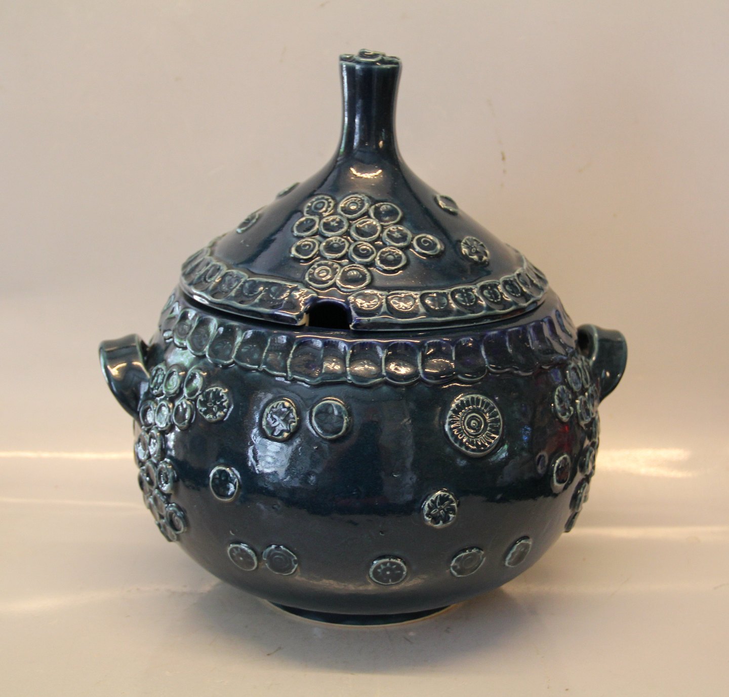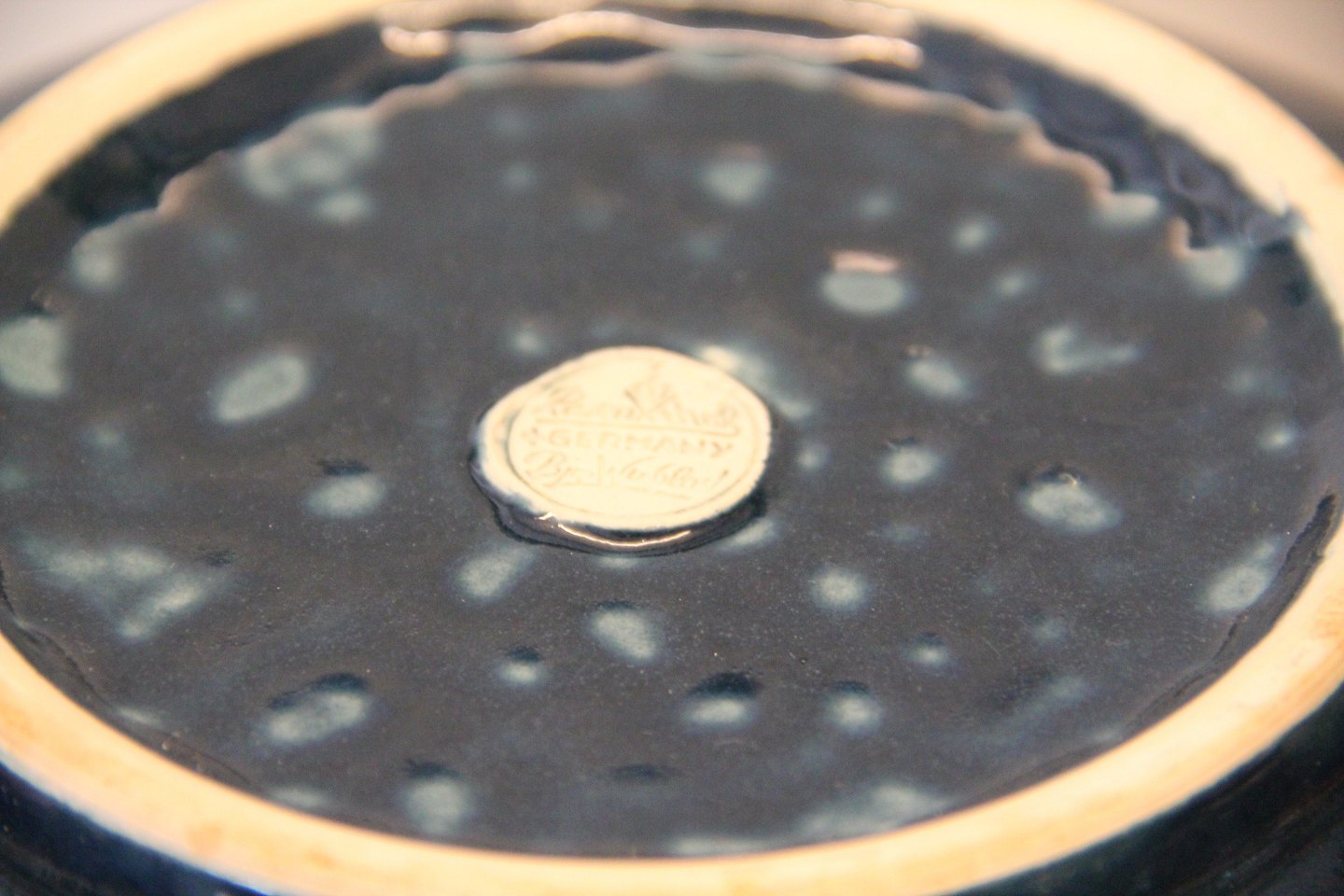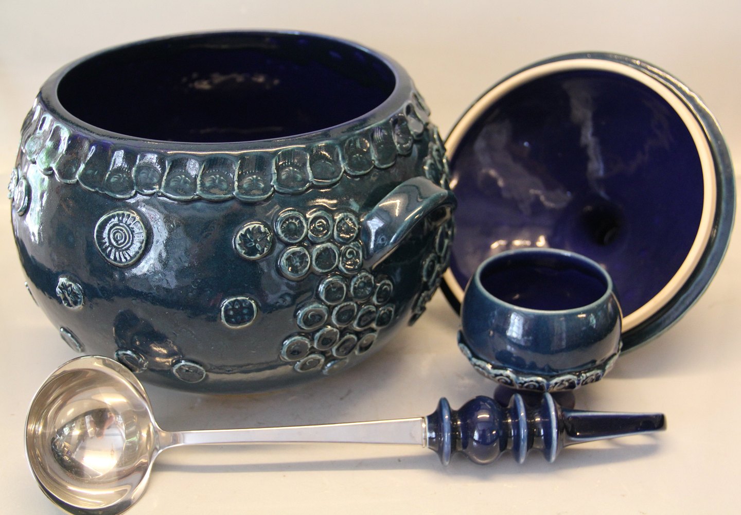 Beskrivelse: Løg formet Wiinblad Rosenthal Punch Bowle med låg Blåglaseret Stentøj med øse og 12 kopper
