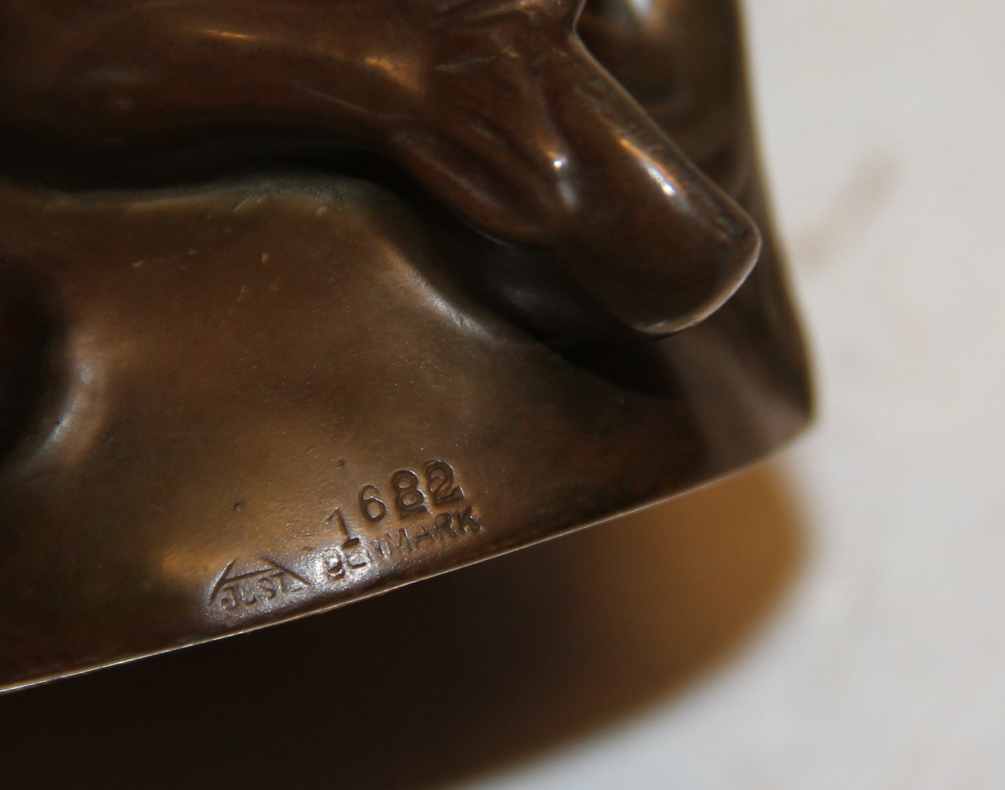Beskrivelse: Art Deco Just Andersen Havdreng på Næsehorns hoved 12 cm Stemplet Just A. D. 1682 Denmark Diskometal Patineret bronze! I fin stand ca 1930