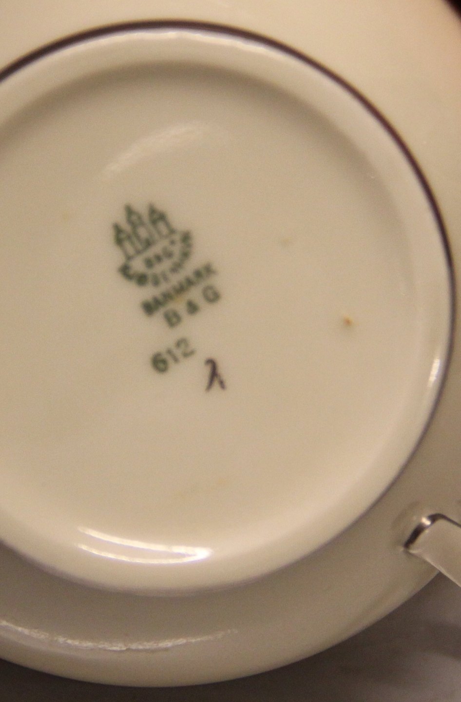 094 a Sukkerskål (mellem) 10,5 cm (593)Alladin Bing & Grøndahl B&G : Creme porcelæn med platin kant, form 612 I fin og hel stand.
