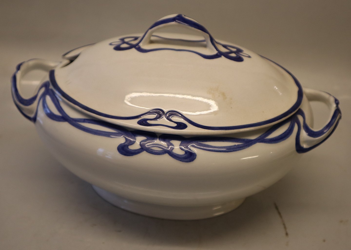 Large Tureen 20 x 34 x 24 cm with stand 37 x 27 cm Blue Olga Villeroy & Boch Dredsen Germany Faience Blaa Olga ”Pomerania"