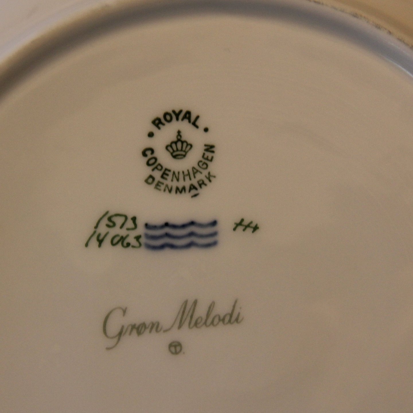 1513-14063 Luncheon plate 21 cm Green Melody #1513 Royal Copenhagen White glazed ribbed porcelain with green decoration and gold