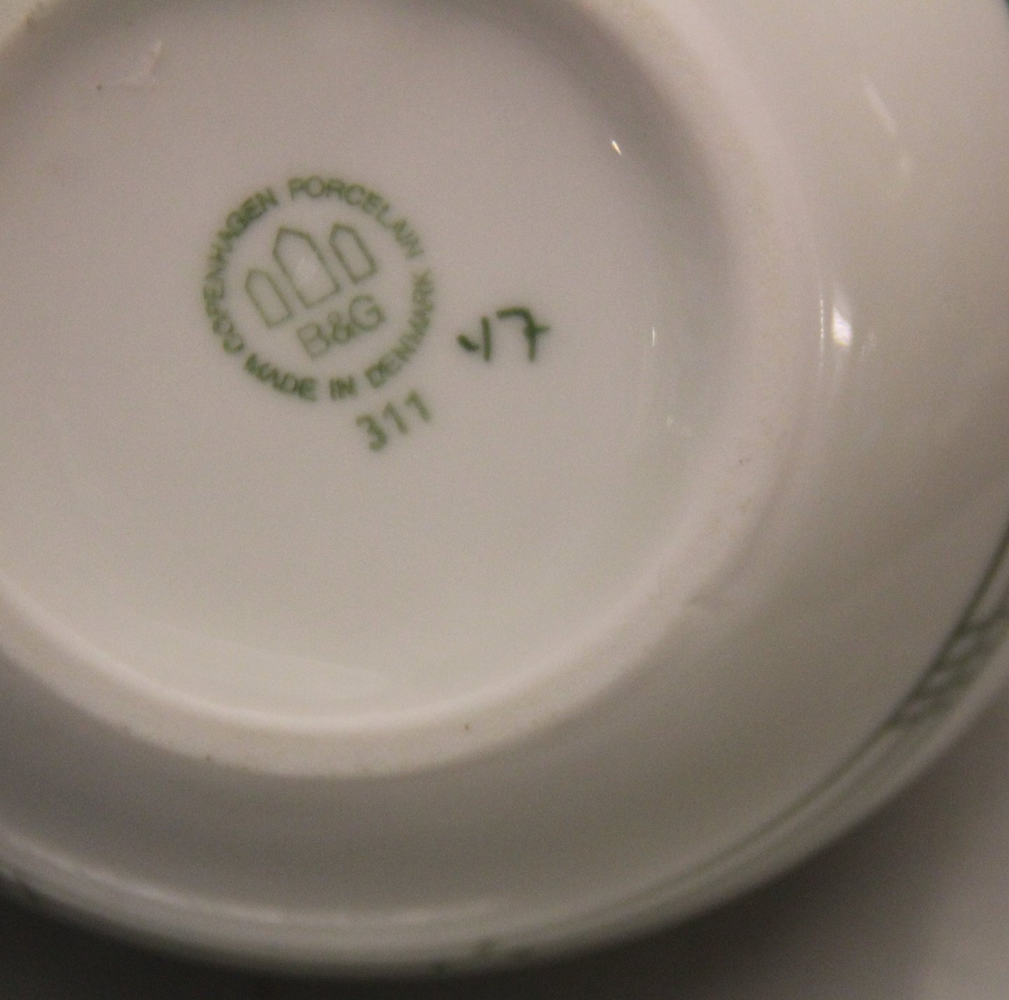 Olympia Bing & Grøndahl B&G Olympia: Kraftigt hvidt porcelæn med mønster med grønne streger,