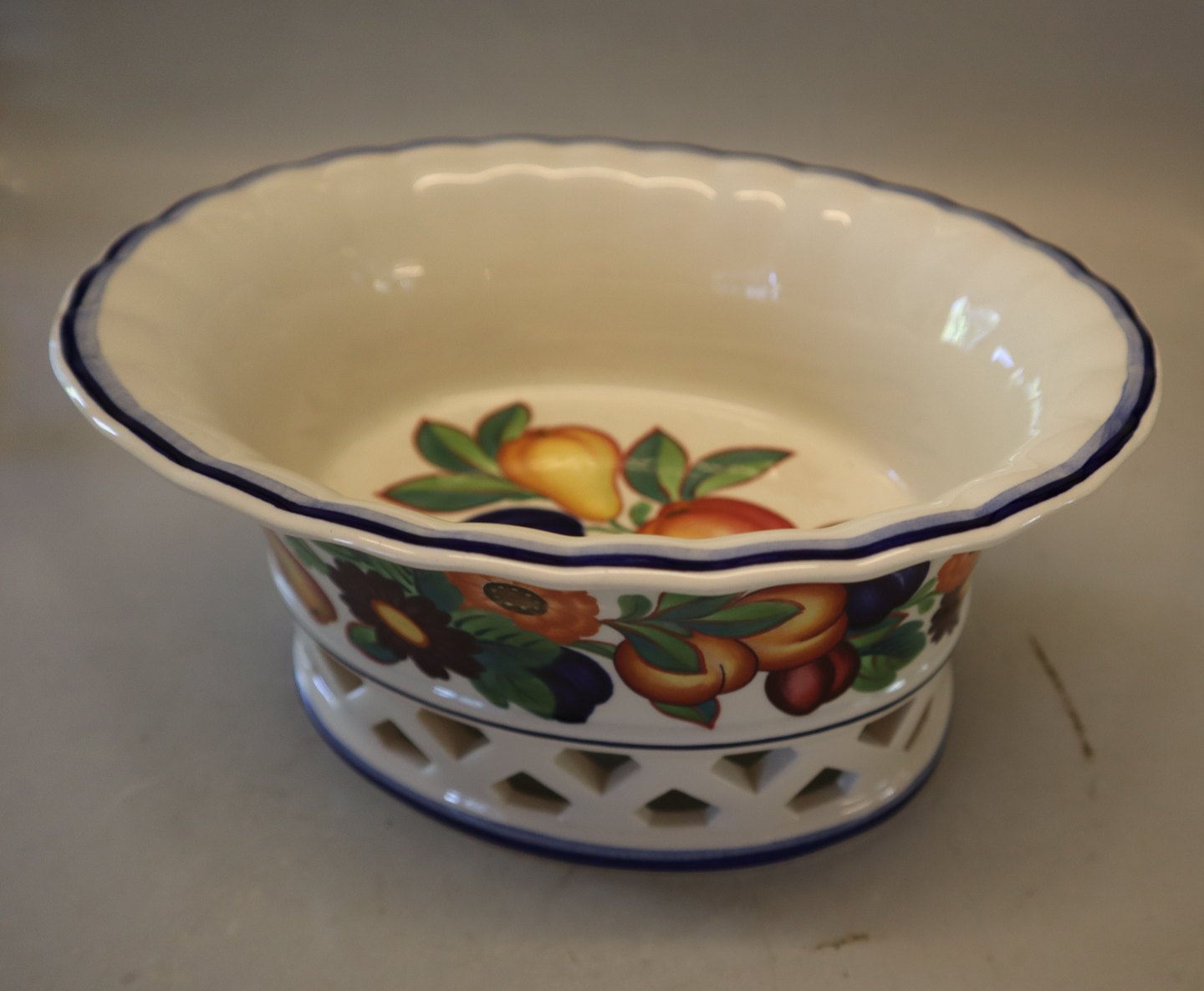 690 Oval Fruit basket 12 x 24 x 19 cm Bowl (1739690) Golden Summer Royal Copenhagen (Gylden Sommer) In mint and nice condition Aluminia Design after Christian Joachim