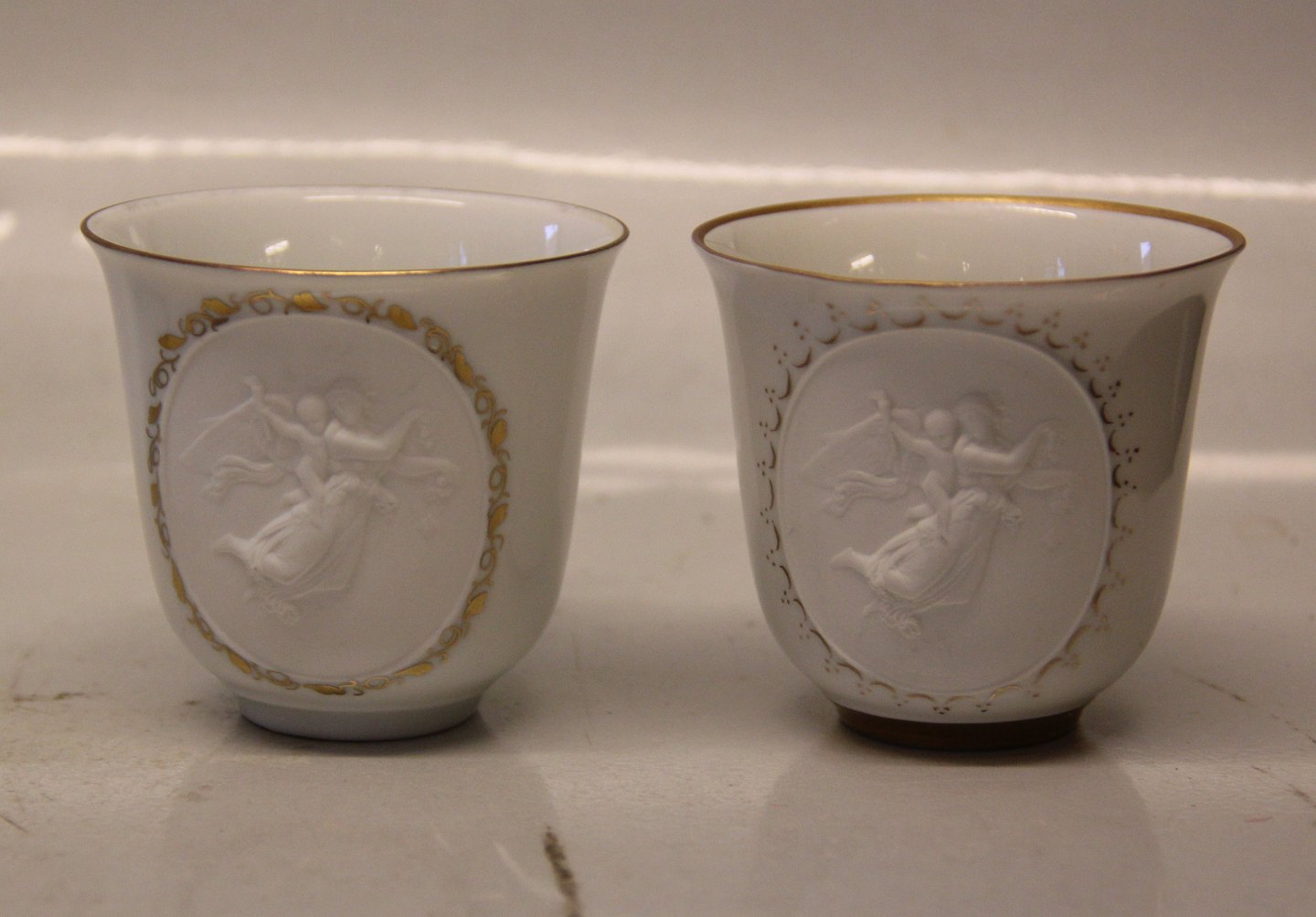 5 x 283 Kop & underkop, tynd guldkant "Amor og Hymen" Engle i relief efter Thorvaldsen
