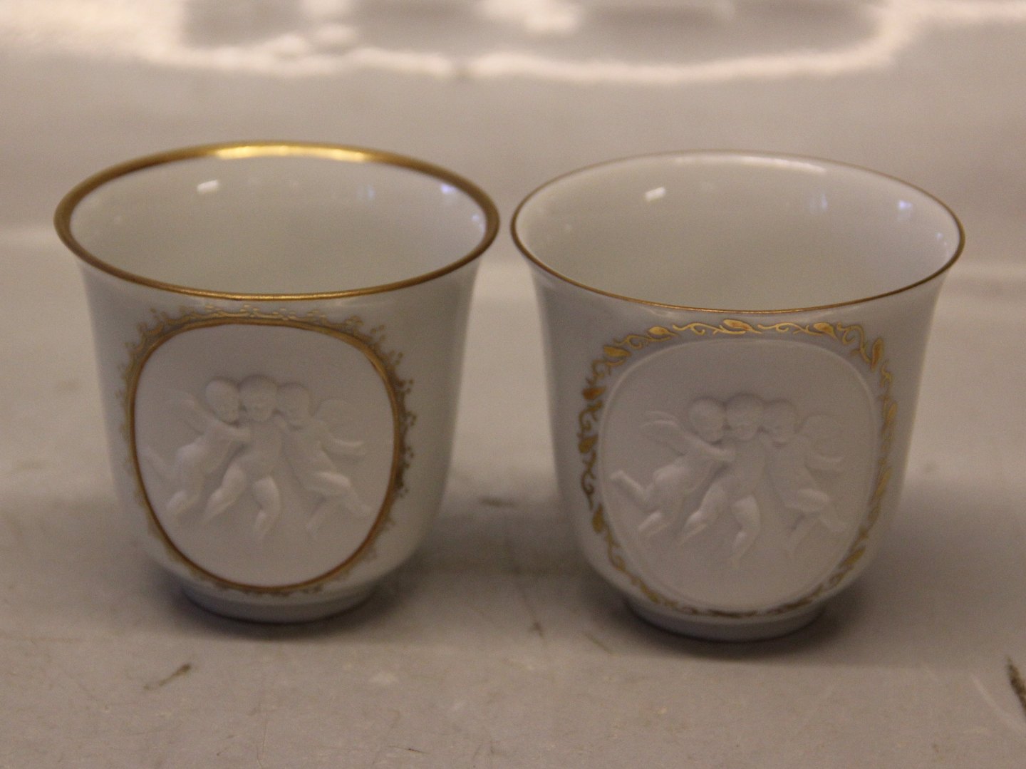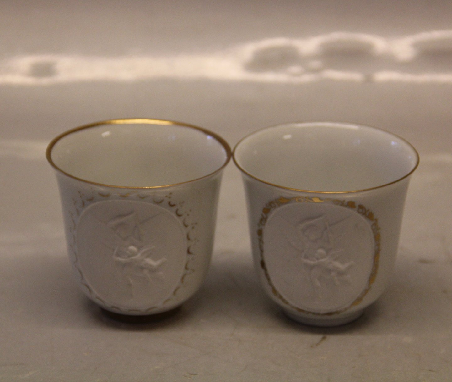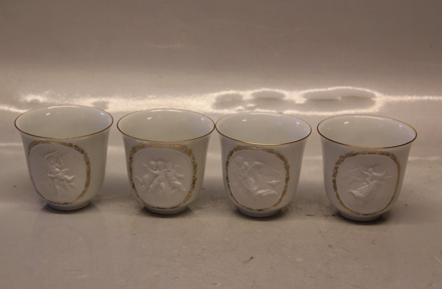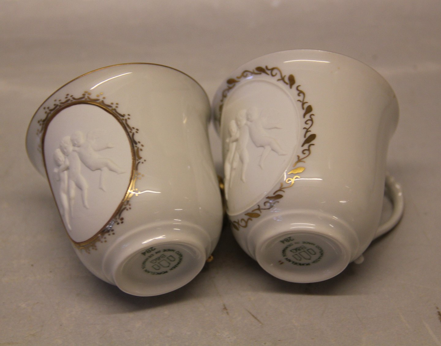 3 x 284 Kop & underkop, tynd guldkant "Tro, Håb & Kærlighed" Tre engle i relief efter Thorvaldsen