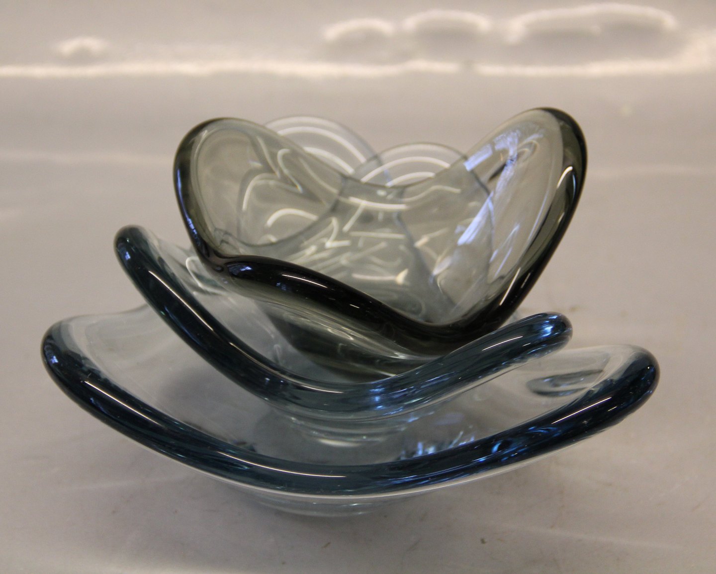 Holmegaard Fionia 1955 Røgfarvet trefløjet skål 8.5 x ca 13 cm 386 gram