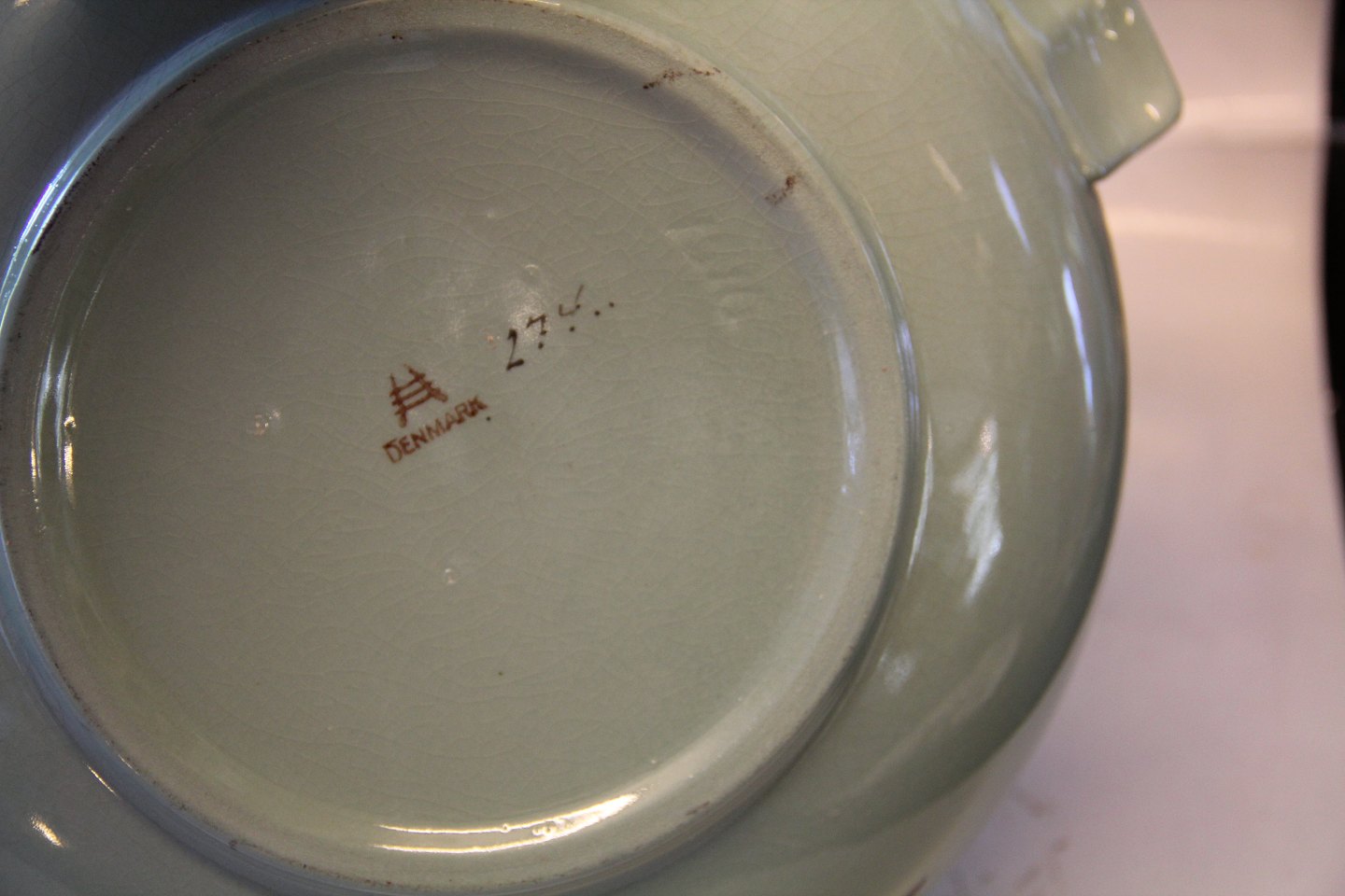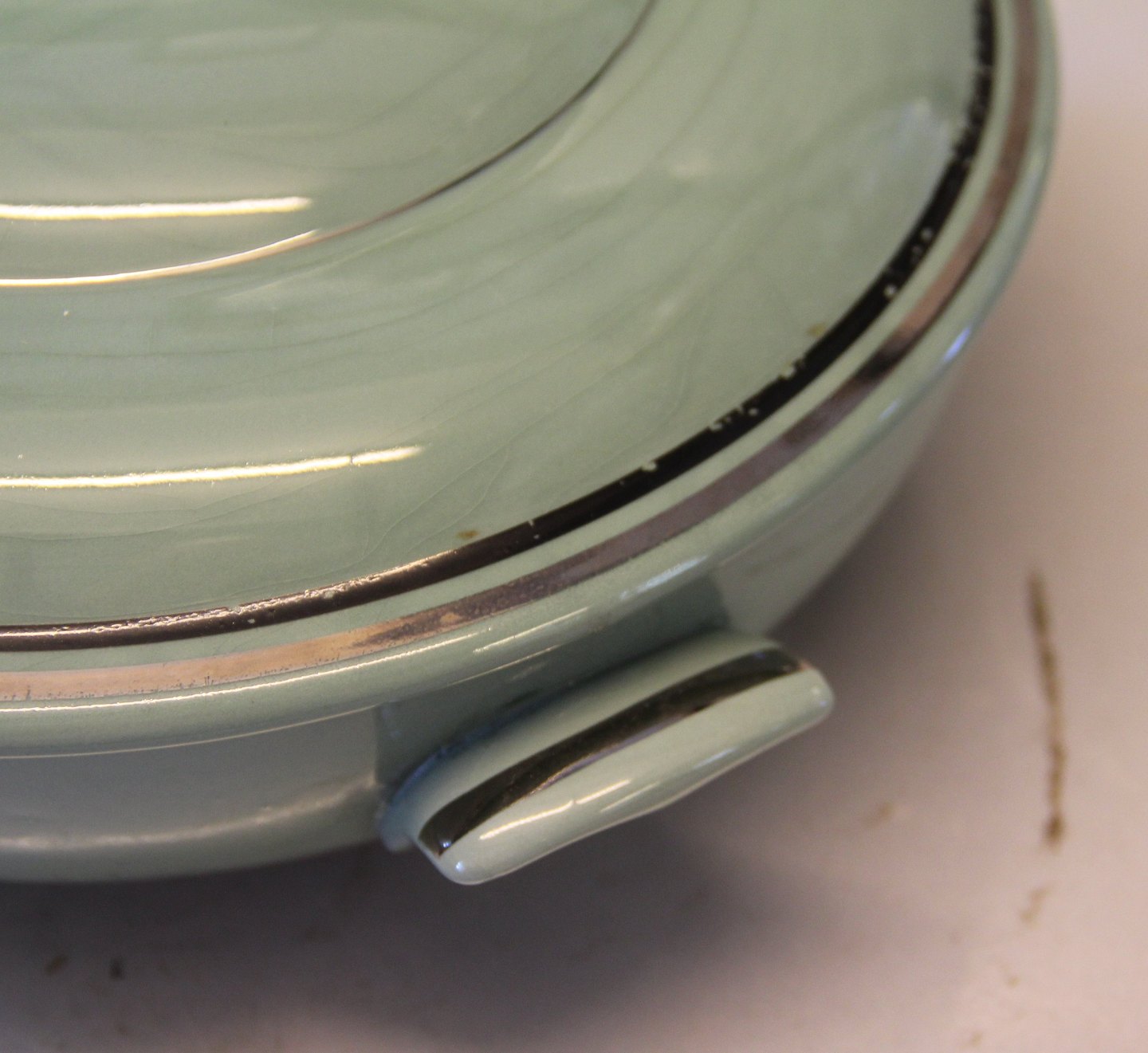 Baldur: Grøn begitning med sort platin bånd. Håndmalet fisk- og skaldyrsdekoration i sort og platin Torkild Olsen (1935-1939)