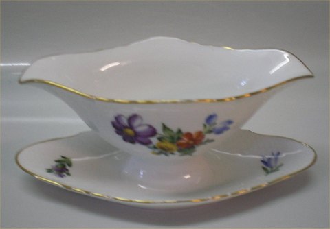 493-1871 gravy boat on fixed stand 10 x 21 cm Royal Copenhagen Tableware Saxon Flower Light. Handpainted In nice and mint condition