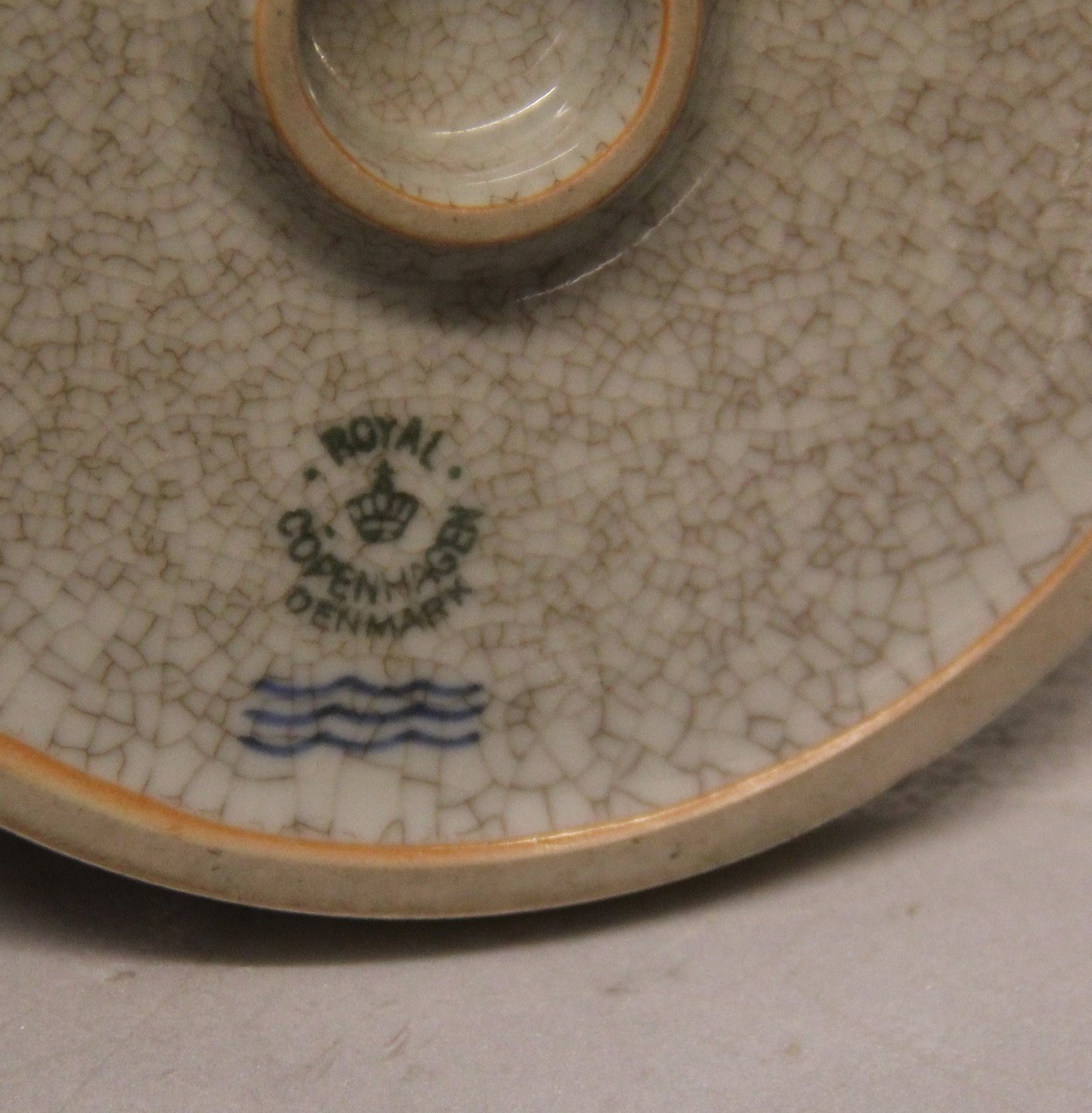 Description: 3335 RC Candlestick grey with gold and orange line 6 x 12 cm Royal Copenhagen Crackleware Craquelé, (Crackelure)