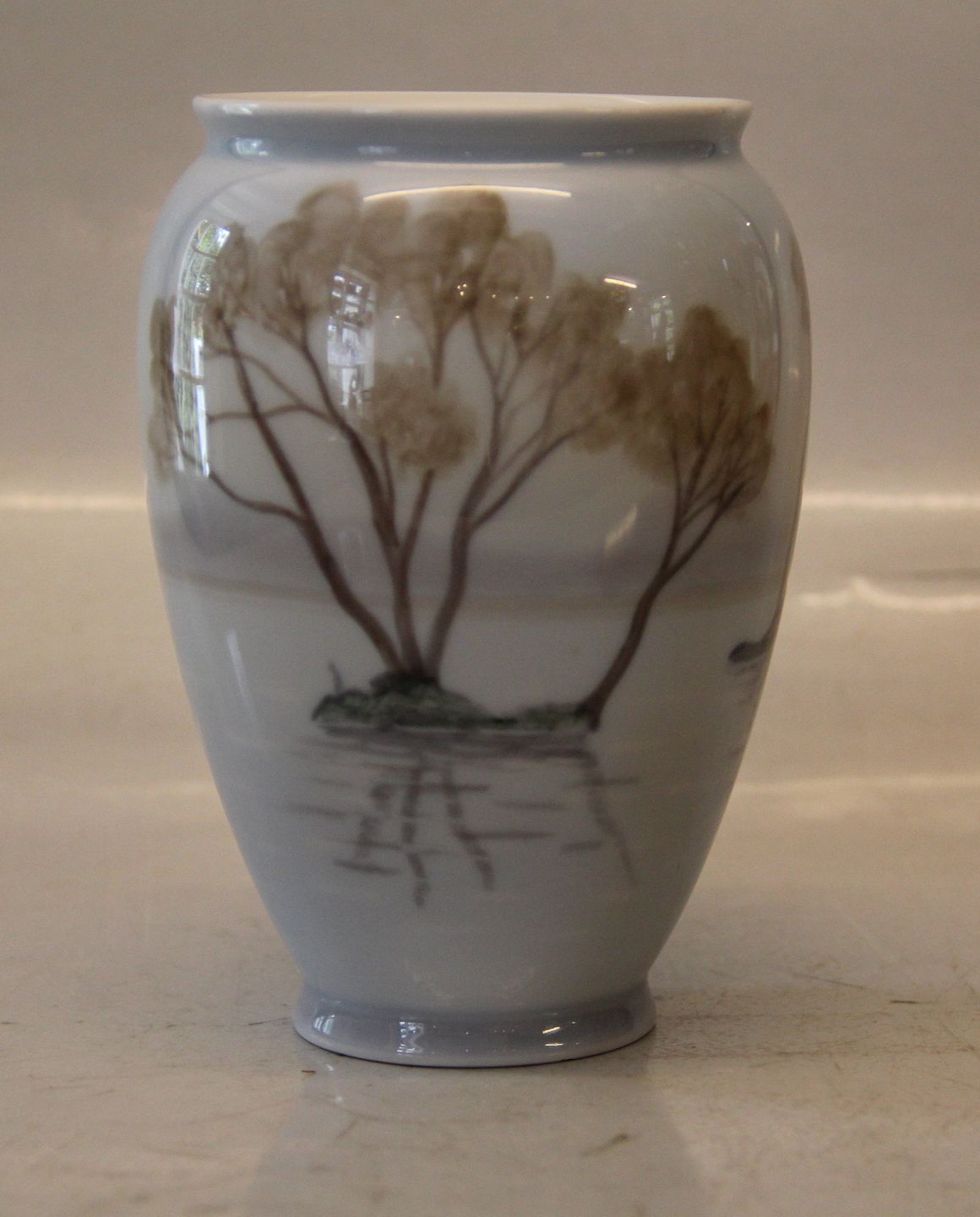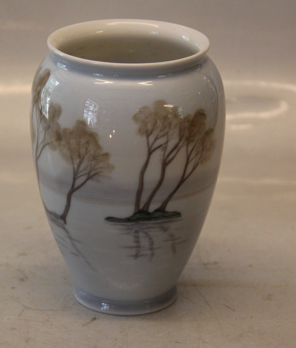 Beskrivelse: B&G 8611-365 Vase ca 14 cm birketræer i en sø Bing & Grøndahl I fin og hel stand.