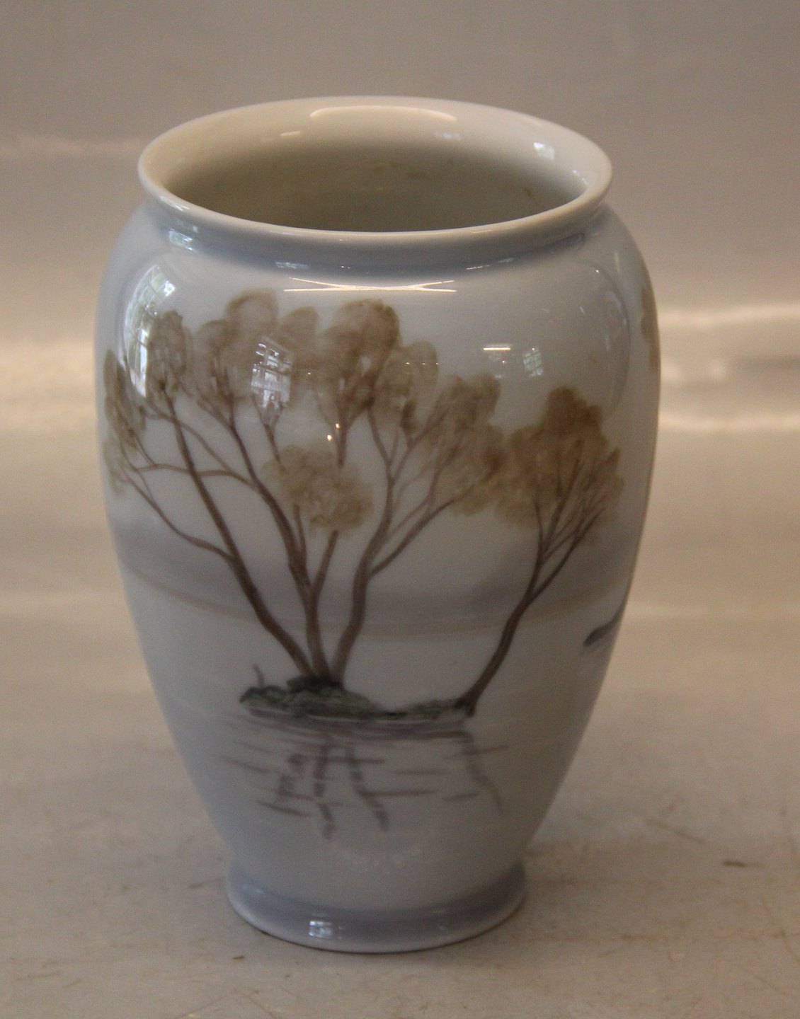 B&G 8611-365 Vase ca 14 cm birketræer i en sø Bing & Grøndahl
