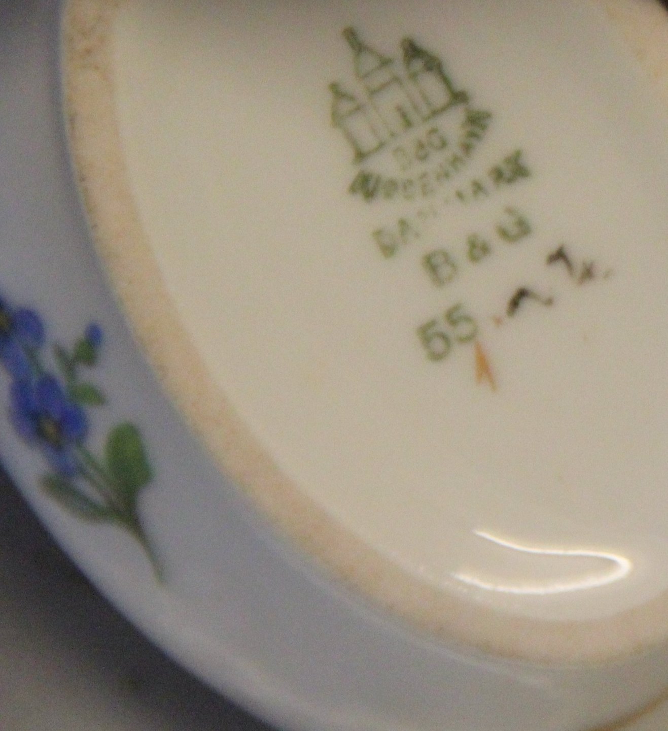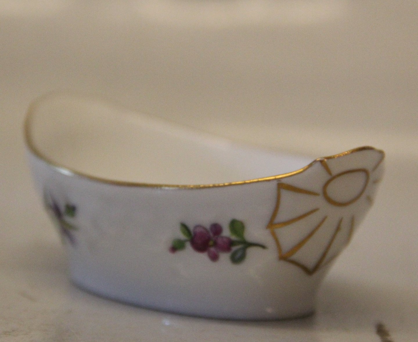 055 Salt cellar 3.5 x 9 cm (547) Njal Bing and Grondahl Cream base, blue and yellow springflowers, form 356