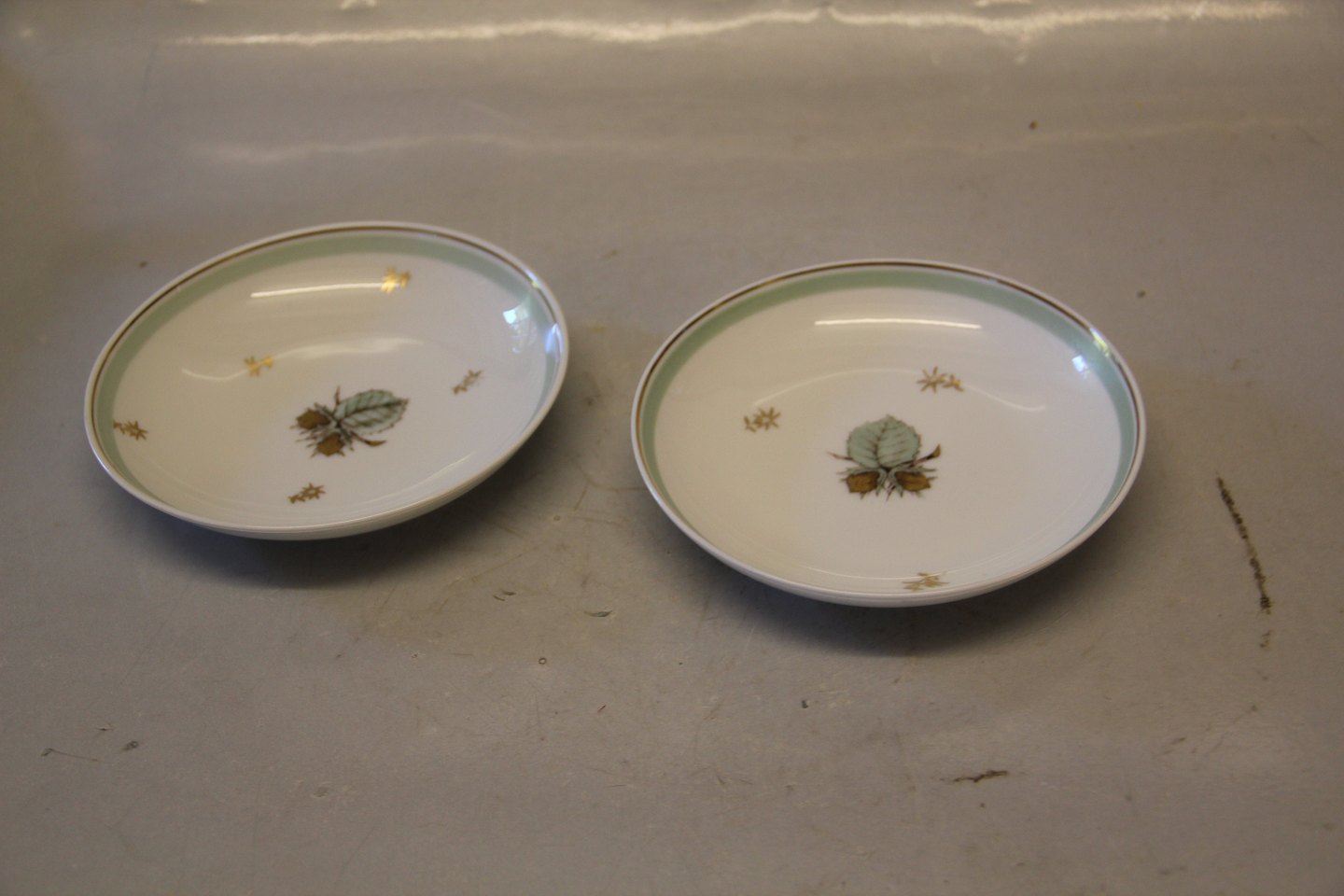 029 Sidetallerken - asiet 13,5 cm Hasselnød Bing & Grøndahl B&G : Hvidt porcelæn, hasselnødder i guld, grønne blade, grønt bånd og guldkant, form 601 Helsingør I fin og hel stand. Hazelnut - Haselnuss