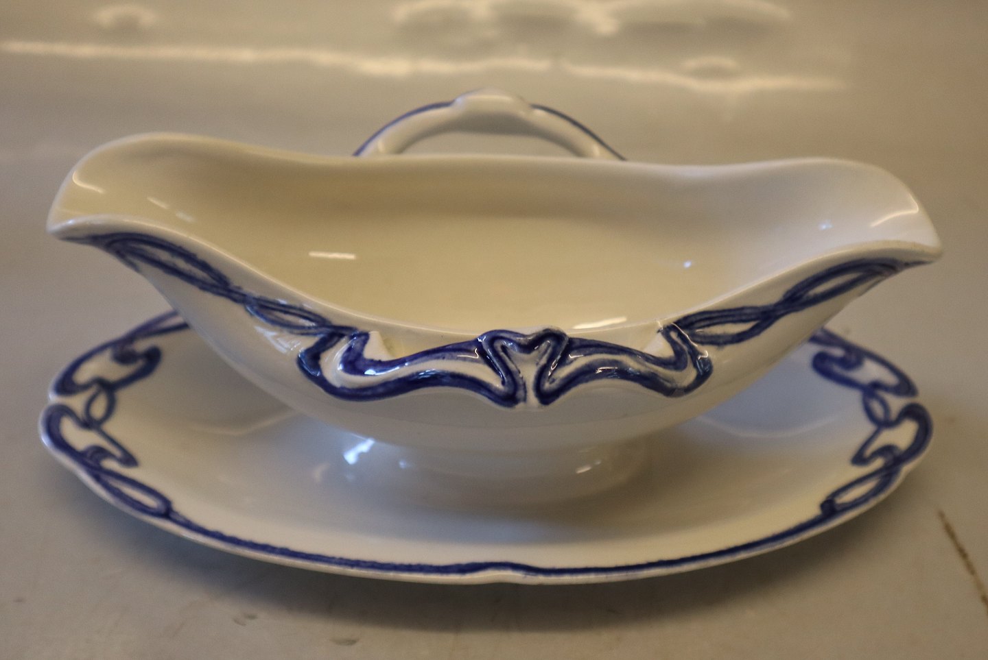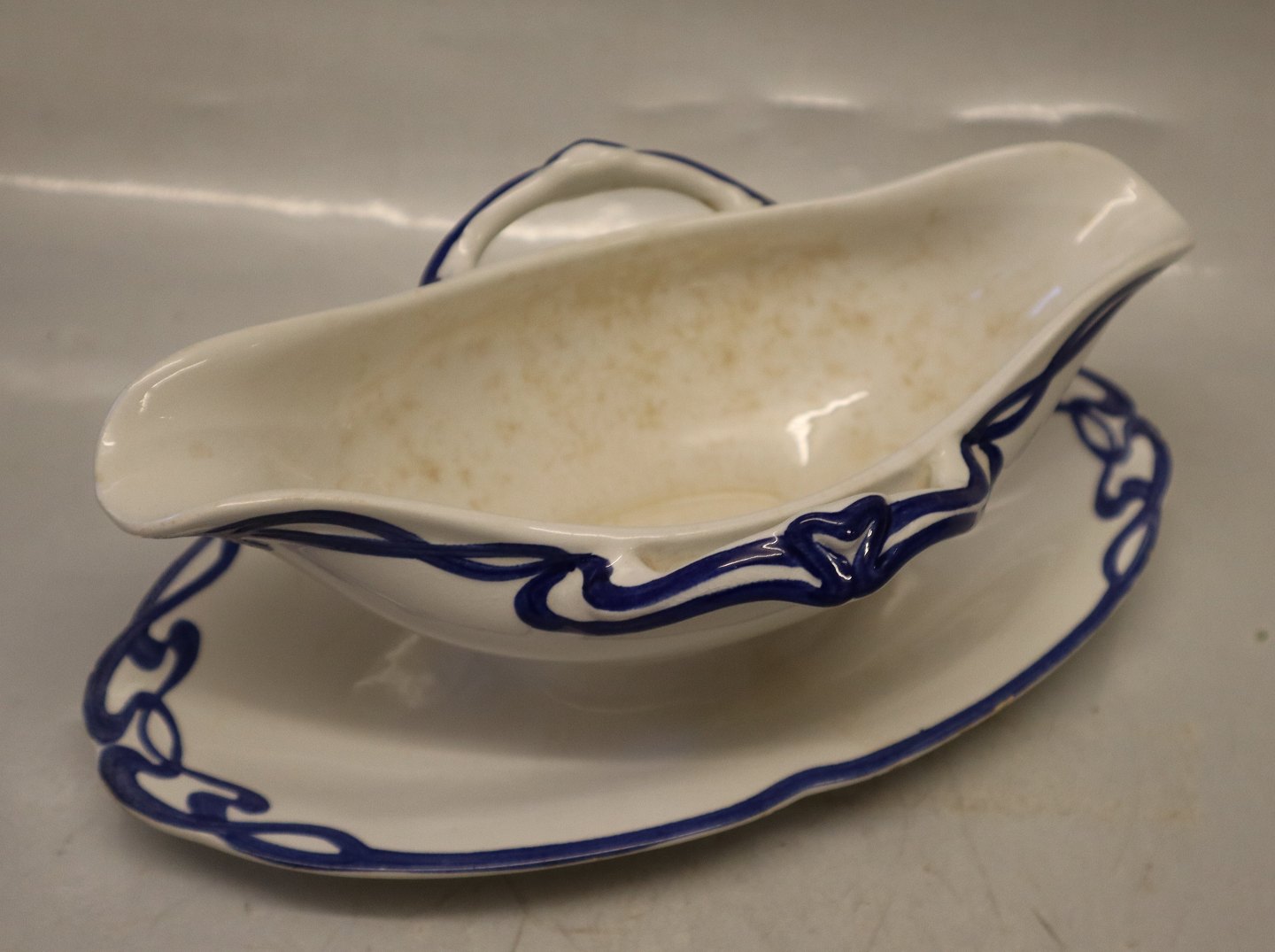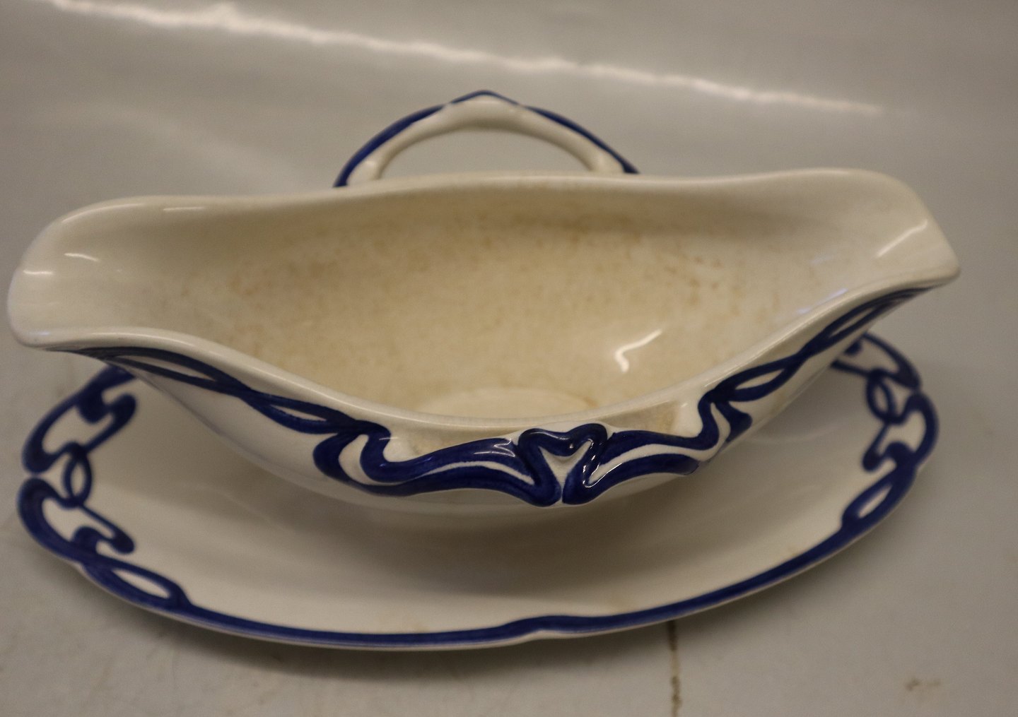 Sovsebåd på fast fod 10 x 25 cm Blå Olga fra Willeroy & Boch, Dredsen Germany Fajance ”Pomerania”