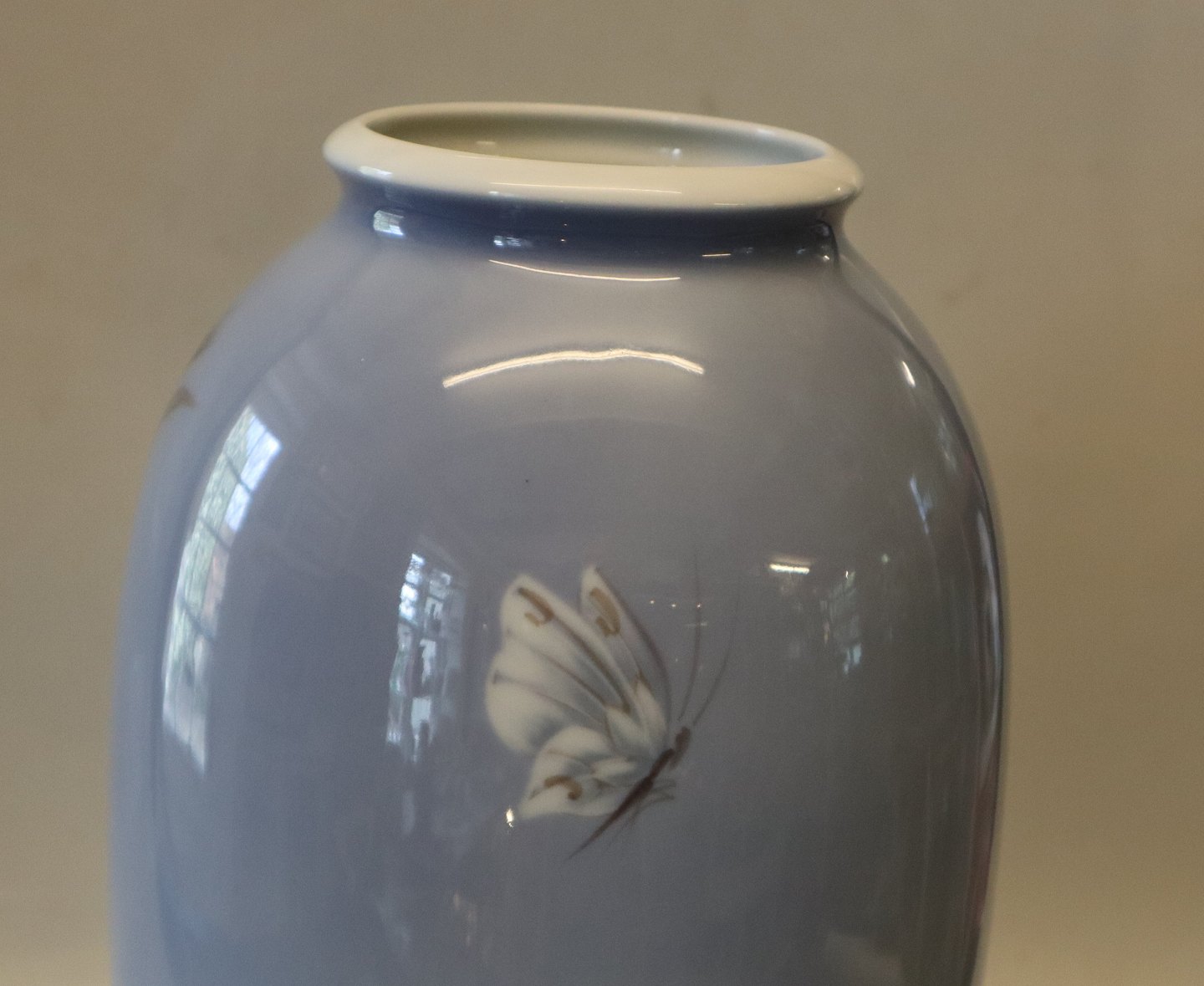 2629-2129 Kgl. Vase med blomstergren og sommerfugl 28 cm Kongelig Dansk