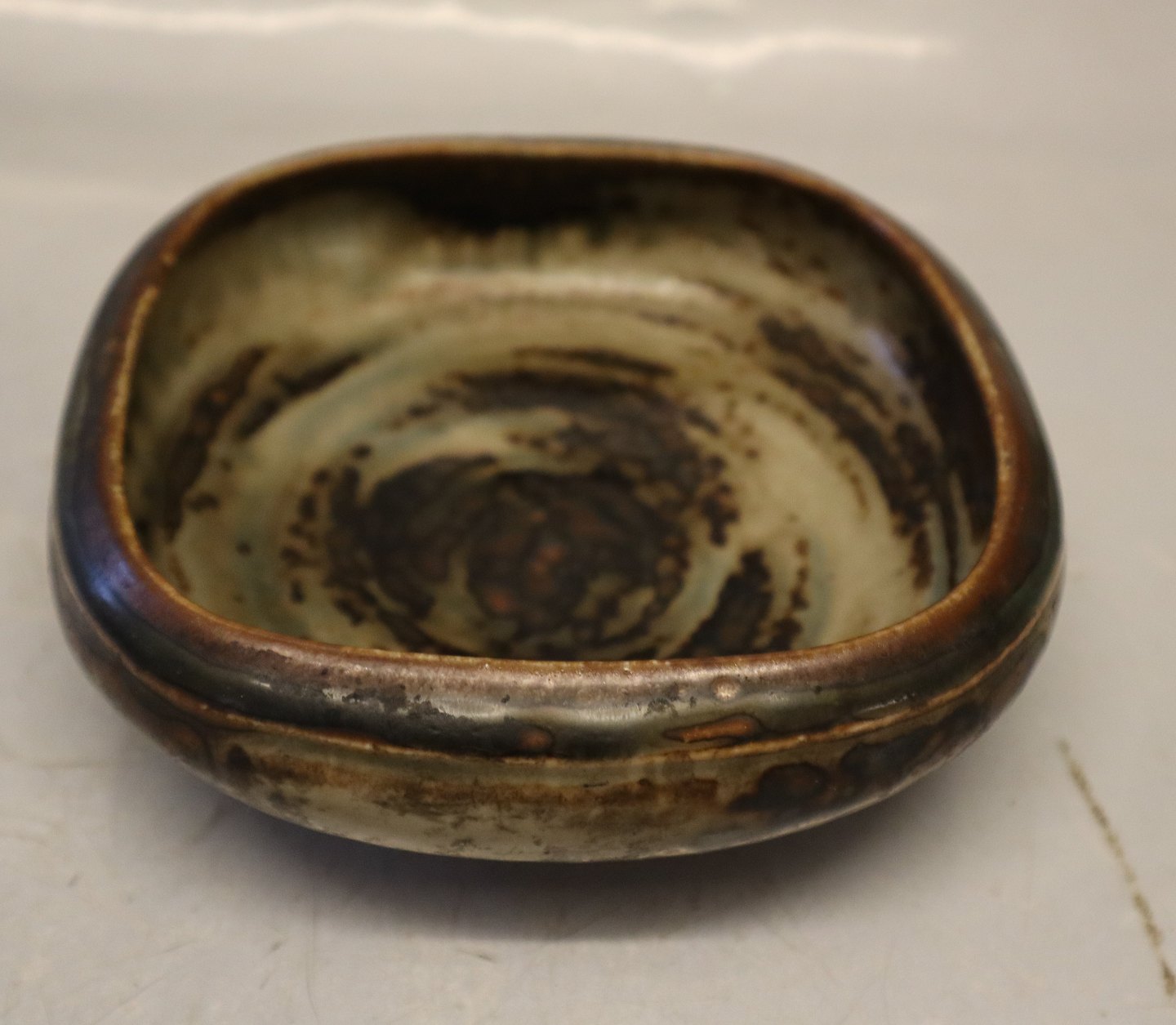 Kongelig Dansk Stentøj 20161 Kgl. Firkantet skål 16 cm, Bode Willumsen, marts 1928 Sung Glasur