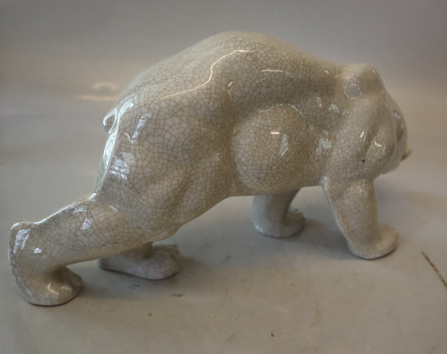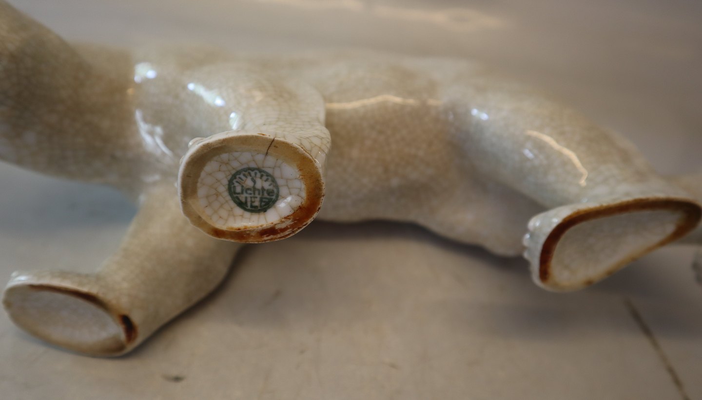 Description: Heubach Lichte Veb 19806 Polar Bear head down 15 x 28 cm Cracckled Glaze
