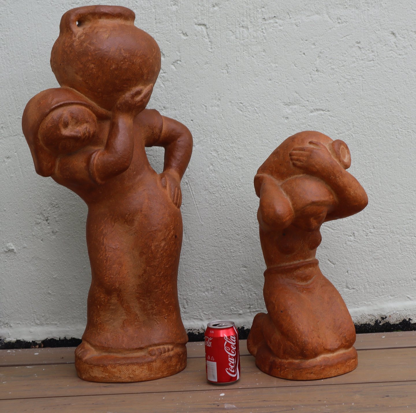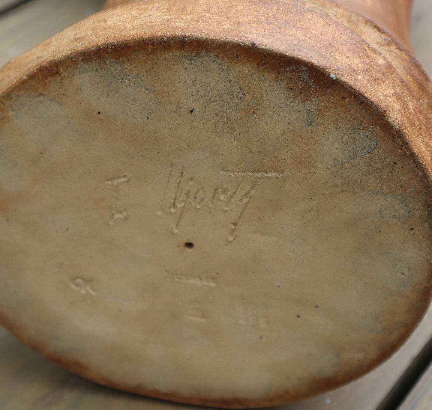 Beskrivelse: Kæmpe Terrakotta figur L. Hjorth 393 Stående kvinde med krukke 73 cm Gertrud Kudielka Terrakotta i hel og fin stand