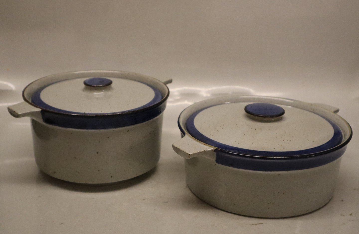 Lidded bowl with handles 11.5 x 22 cm Christine Blue and Grey Stoneware Danish Art Pottery Knabstrup
