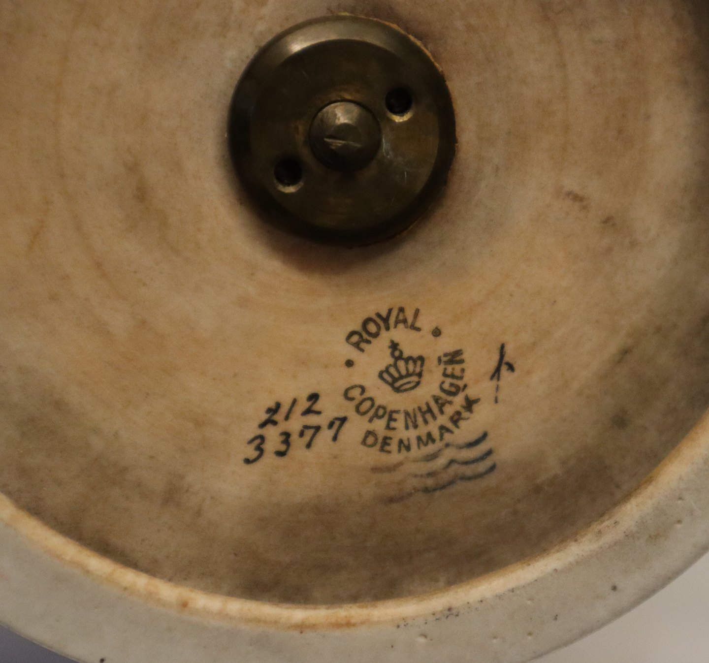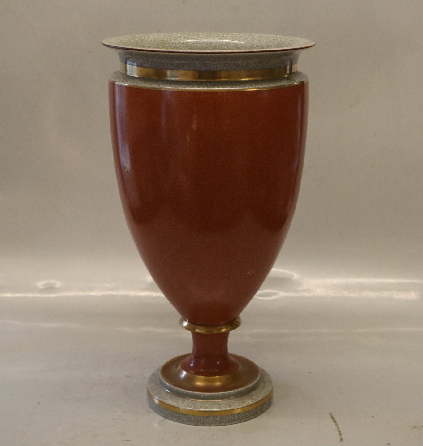 Beskrivelse: 212-3377 Kgl. Pokal - Vase på fod orange & graa 30 x 16.5 cm Kgl. Craquelé fra Royal Copenhagen I hel og fin stand