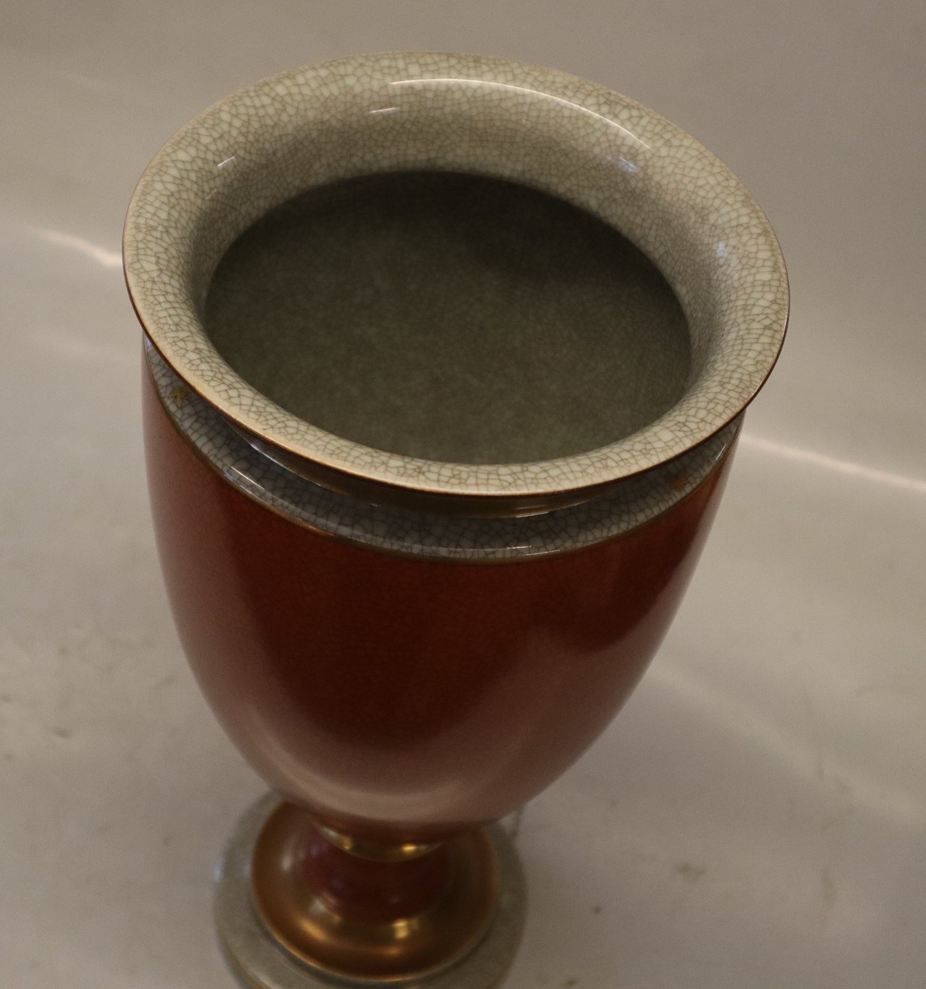 212-3377 Kgl. Pokal - Vase på fod orange & graa 30 x 16.5 cm Kongelig Dansk Craquelé, Craquele