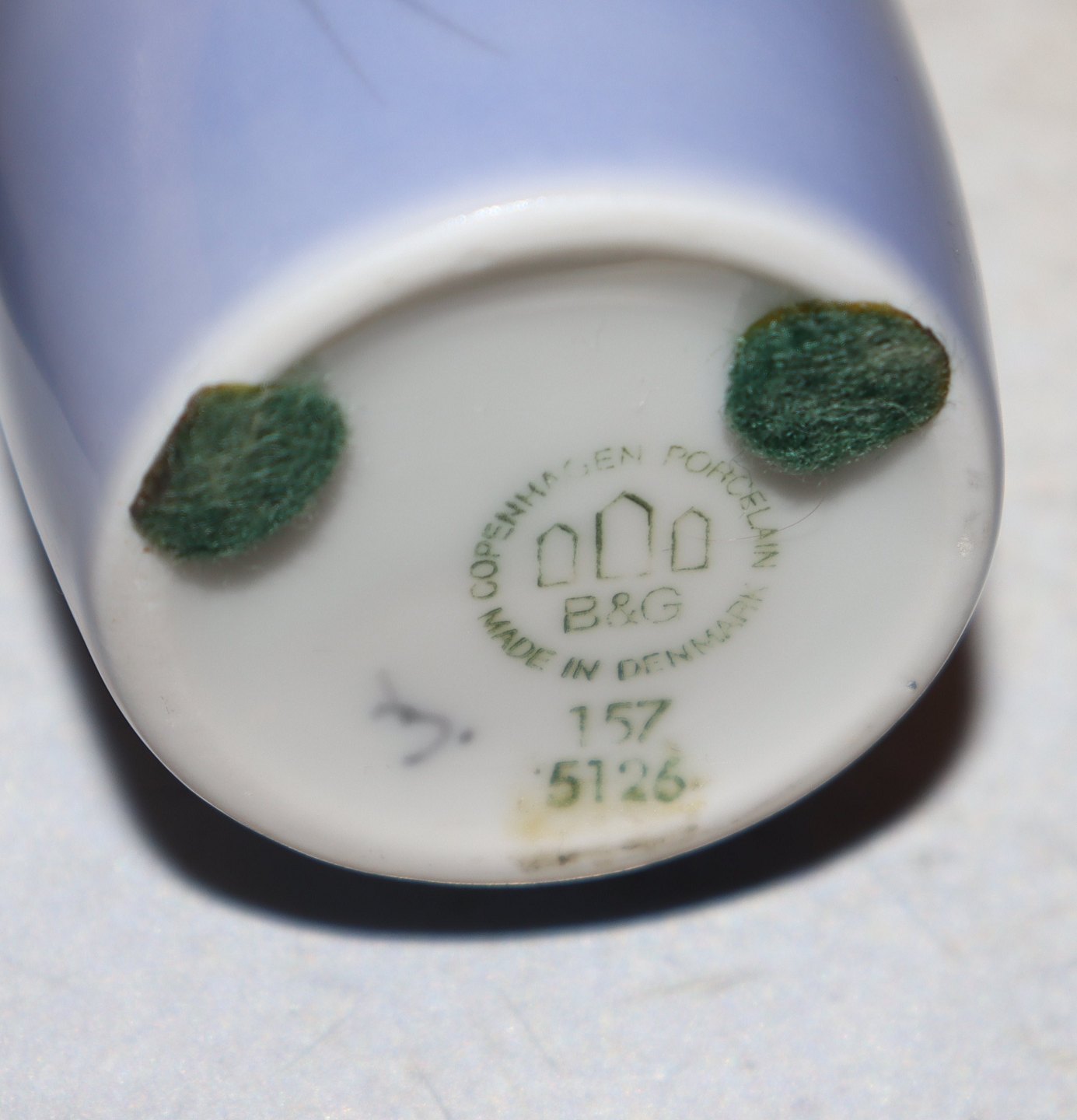 B&G 157-5126 Vase Convalla, White Lily on blue 13.5 cm Convalla: B&G White/blue base, Lily-of-the-valley, form 643 g and Grondahl Marked with the three Royal Towers of Copenhagen. In mint and nice condition