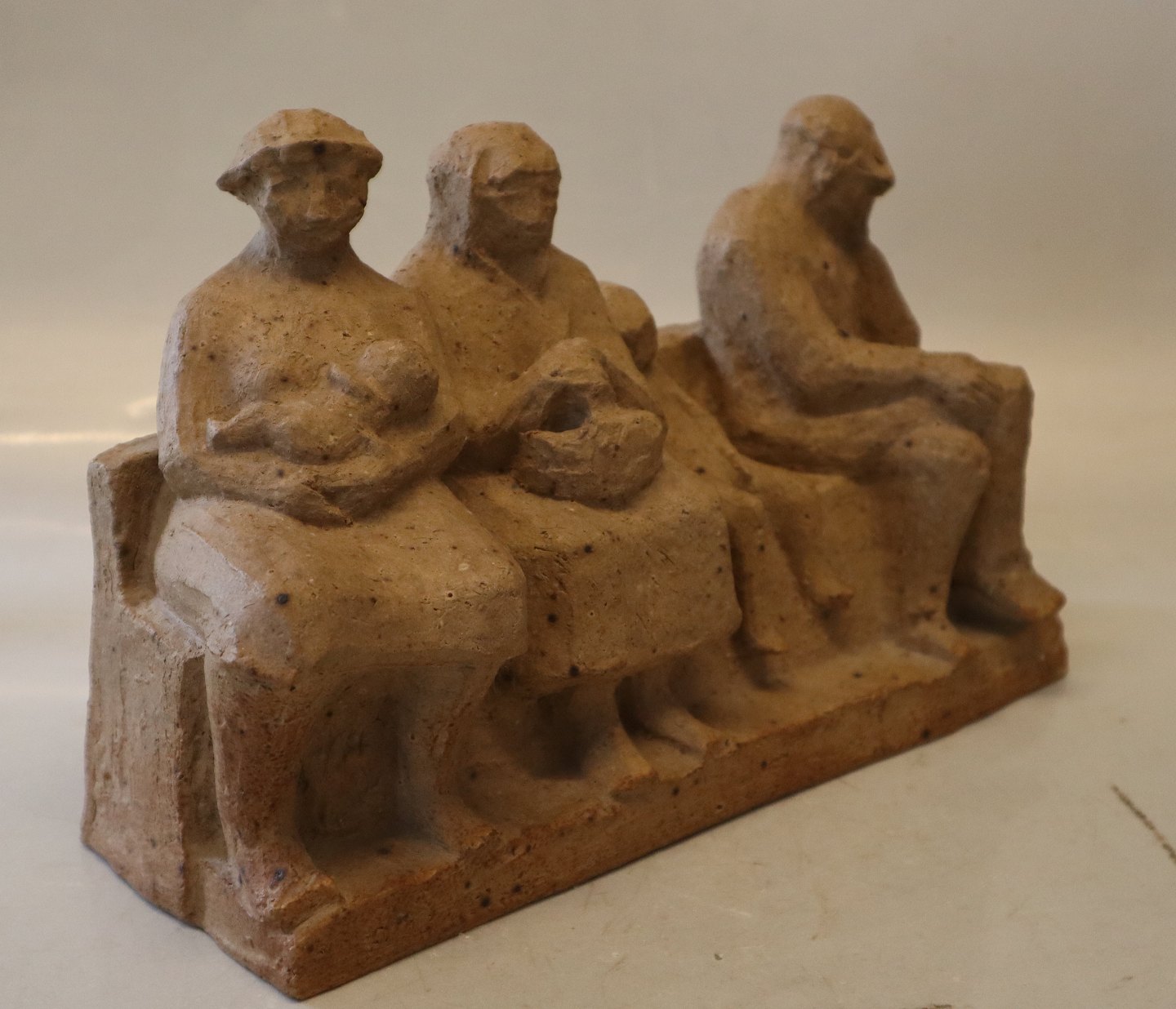 Dansk Stentøjs skulptur 7218 Folk på en bænk 17 x 27 cm Tove Olafsson 1909-1992