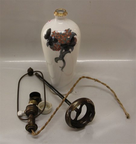 : Kgl Lampe på bronzefod. Dekoreret med Sommerfugle og guld