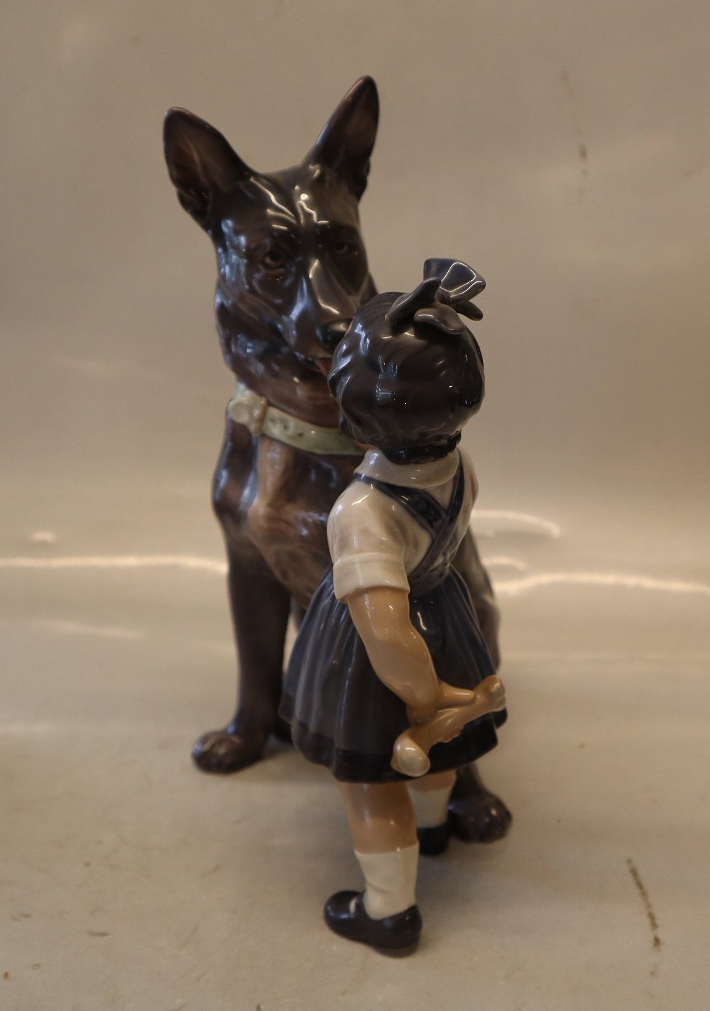 Dahl Jensen figur 1213 Pige med schæferhund 25 cm
