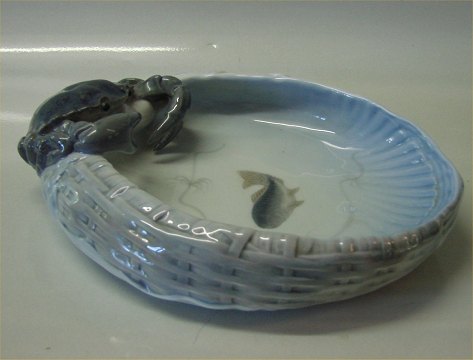 Description: Royal Copenhagen RC 2465 Large Card Tray - crab and fish. Erik Nielsen 6.5 x 24 x 20 cm In mint and nice condition