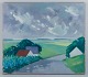 K. Westerberg, also known as Knud Horup, listed Danish artist, oil on canvas. Modernist style. Landscape with houses and country road.